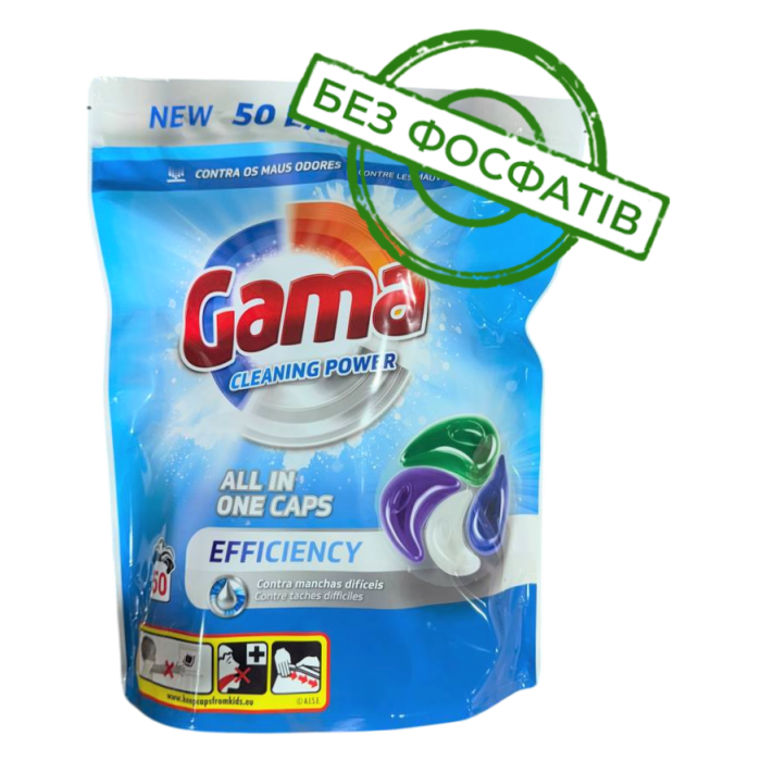 Більше не потрібні 4 окремі упаковки. Достатньо всього однієї капсули Gama Cleaning Power 4 в 1, яка забезпечить потужну універсальну дію!