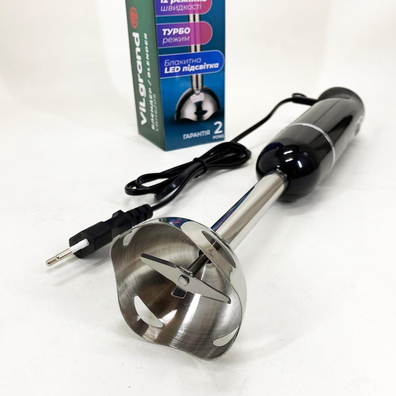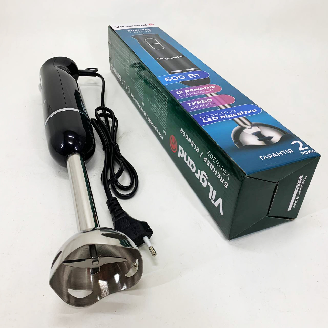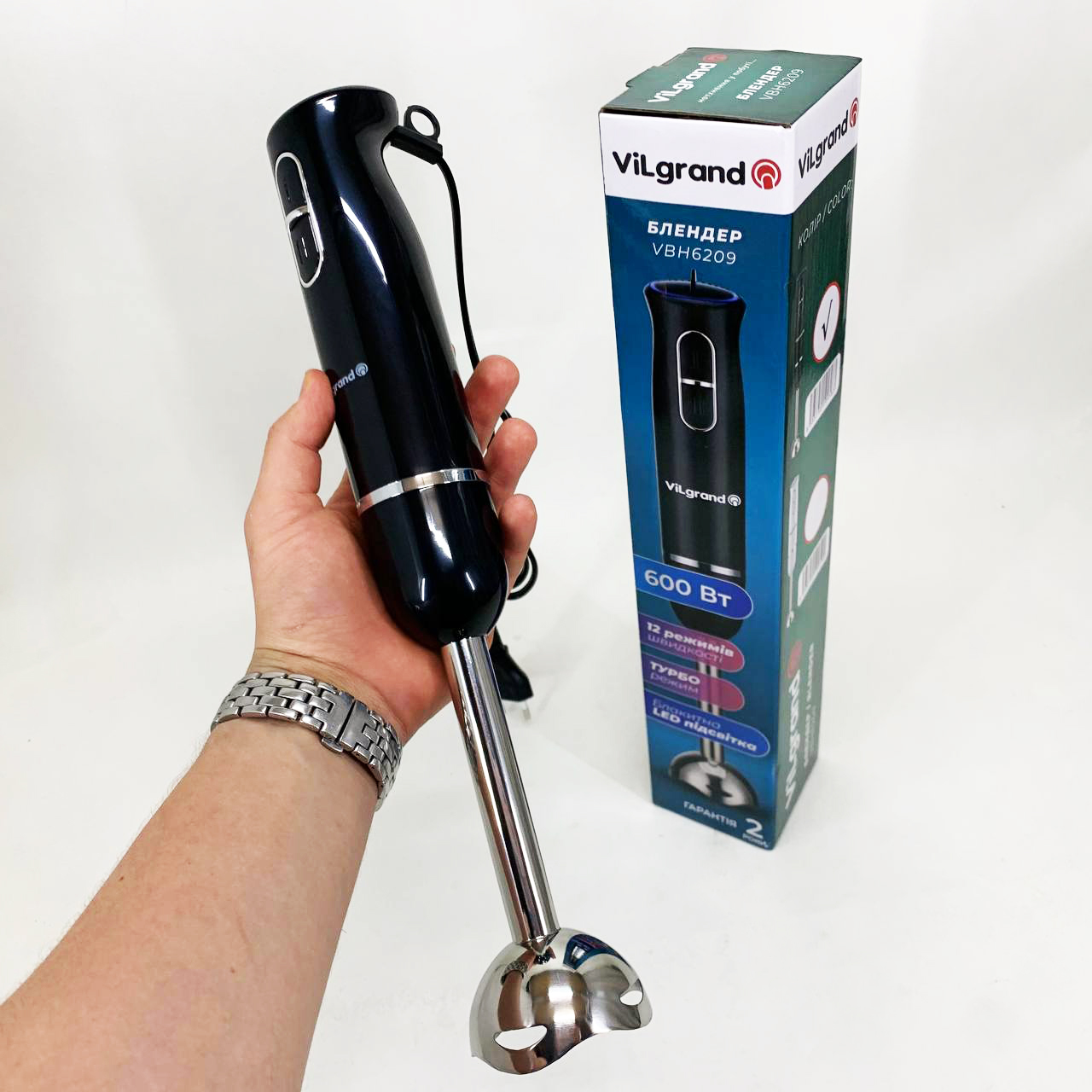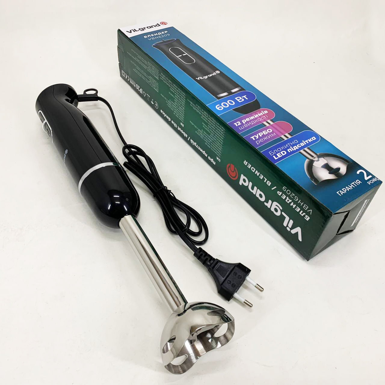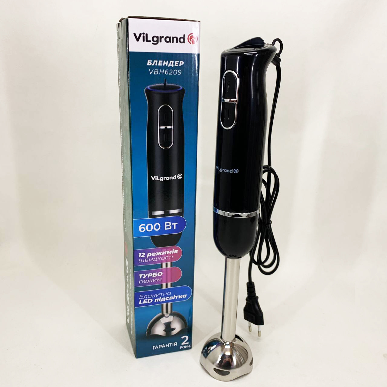 Блендер занурювальний VILGRAND VBH6209 – легко впорається з ручною кухонною роботою і допоможе приготувати різноманітні страви. та стильний дизайн. Очищується після використання і миється. Ножі виконані з високоякісної нержавіючої сталі. 50/60