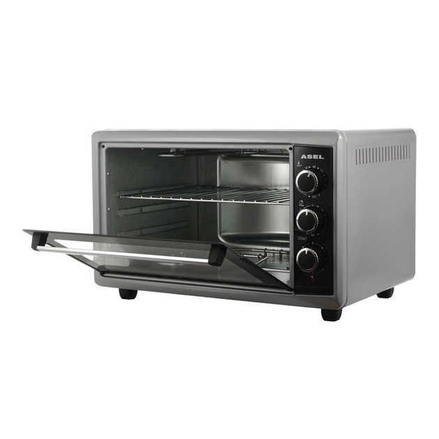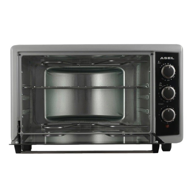 Електро духовка asel оснащена функціями розігріву їжі та напоїв. Потужність духовки становить 1,5 кВт. Корпус виготовлений з нержавіючої сталі та зверху прихований двошаровим біопокриттям із жаростійкого матеріалу. Усередині духовка легко чиститись. Крім цього, духовка оснащена сучасною системою теплоізоляції, має два вбудовані нагрівальні елементи. верхній та нижній. Турецька духовка містка та функціональна. Об’єм Духовка електрична asel досить великий і становить 50 л.