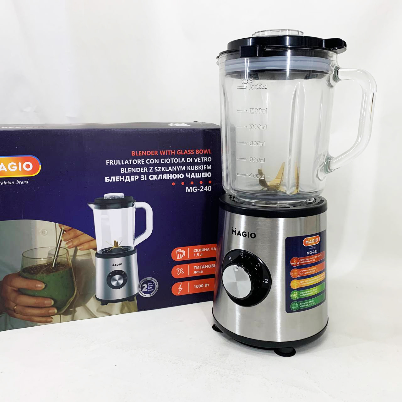 MAGIO MG-240 – це надійність, яка завжди під рукою. Він не просто блендер, а вдале поєднання функціональності та стилю, яке стане ідеальним доповненням до вашої кухні.