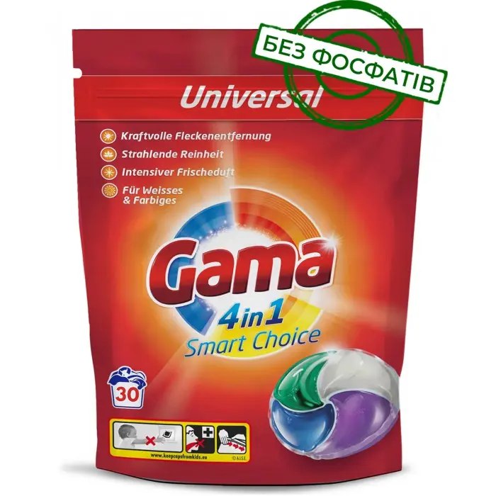 Капсули для прання Gama 4в1 Universal 30 шт
