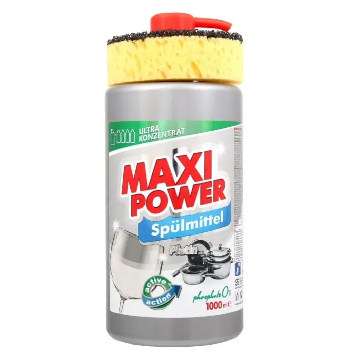 Maxi power помірно піниться і легко змивається з посуду, не залишаючи плівки, як часто буває з іншими засобами.