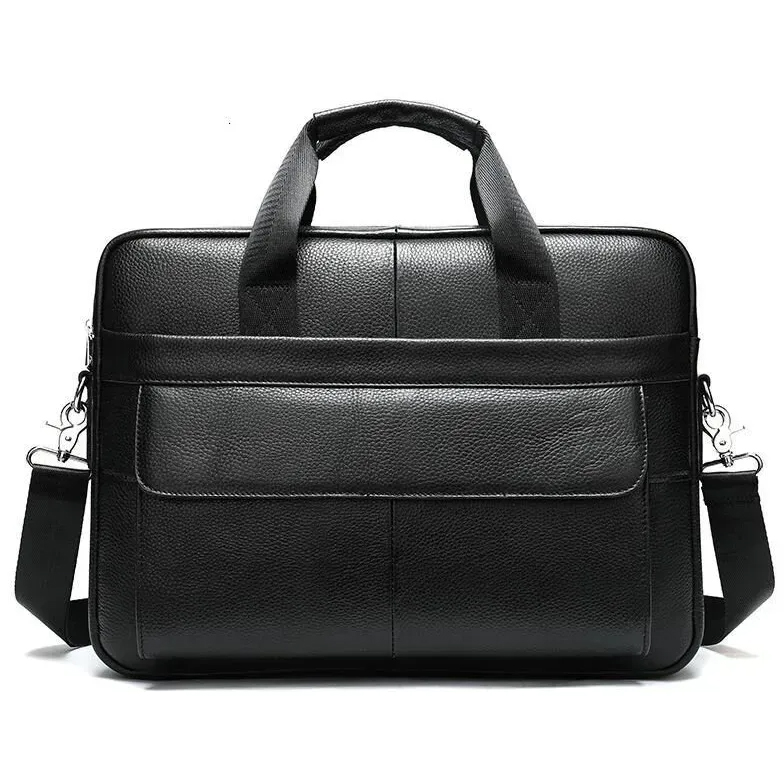 Вишукана та містка чоловіча сумка, виконана з преміальної натуральної шкіри (флотар) чорного кольору. Виріб поєднує у собі стильний дизайн та високу функціональність, має надійну металеву фурнітуру та зручну організацію внутрішнього простору. Ідеально підходить для роботи, ділових зустрічей чи повсякденного використання.