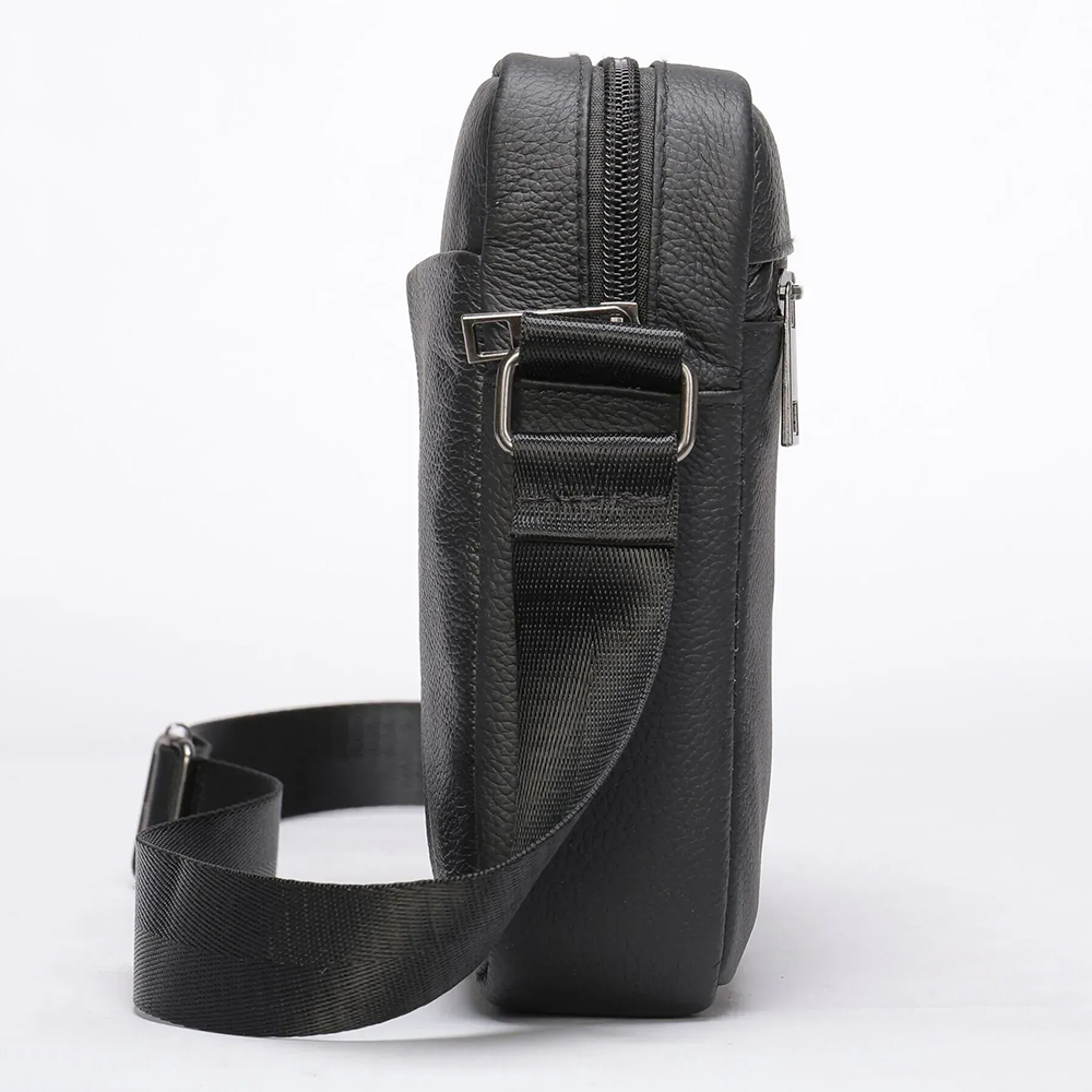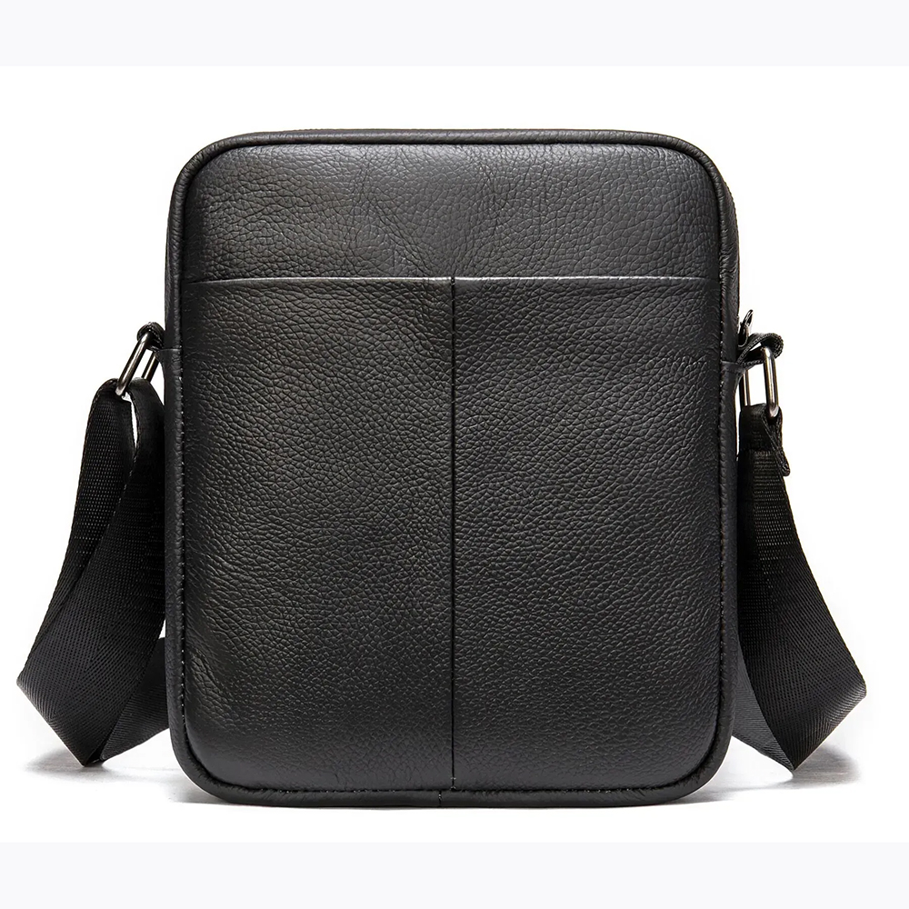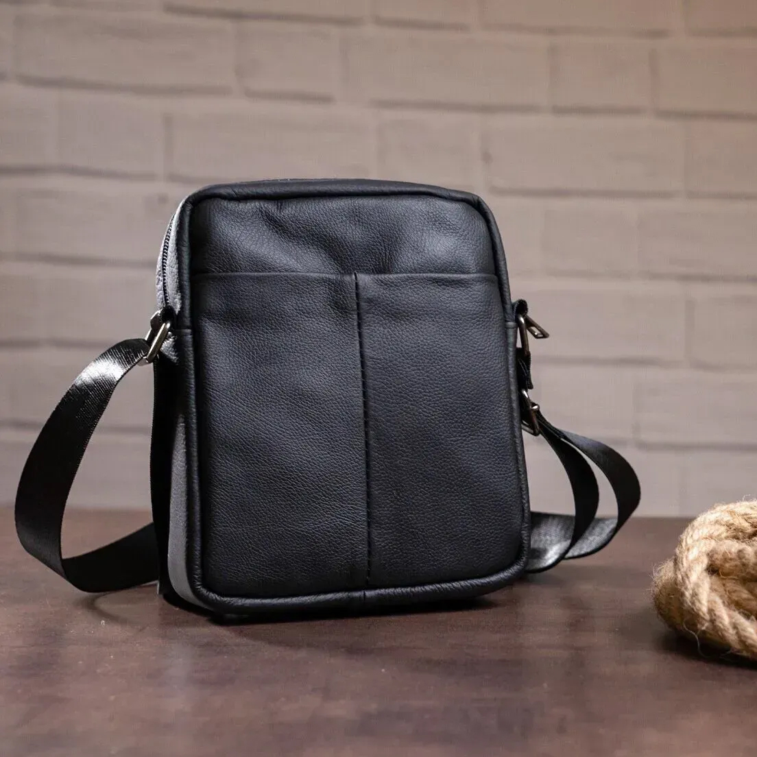 Чоловіча шкіряна сумка месенджер компактна чорна з натуральної шкіри флотар