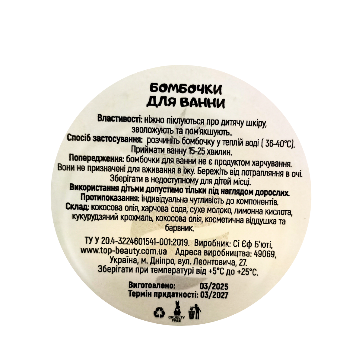 зменшення подразненьБомбочки виготовлені з безпечних натуральних компонентів:кокосова олія;