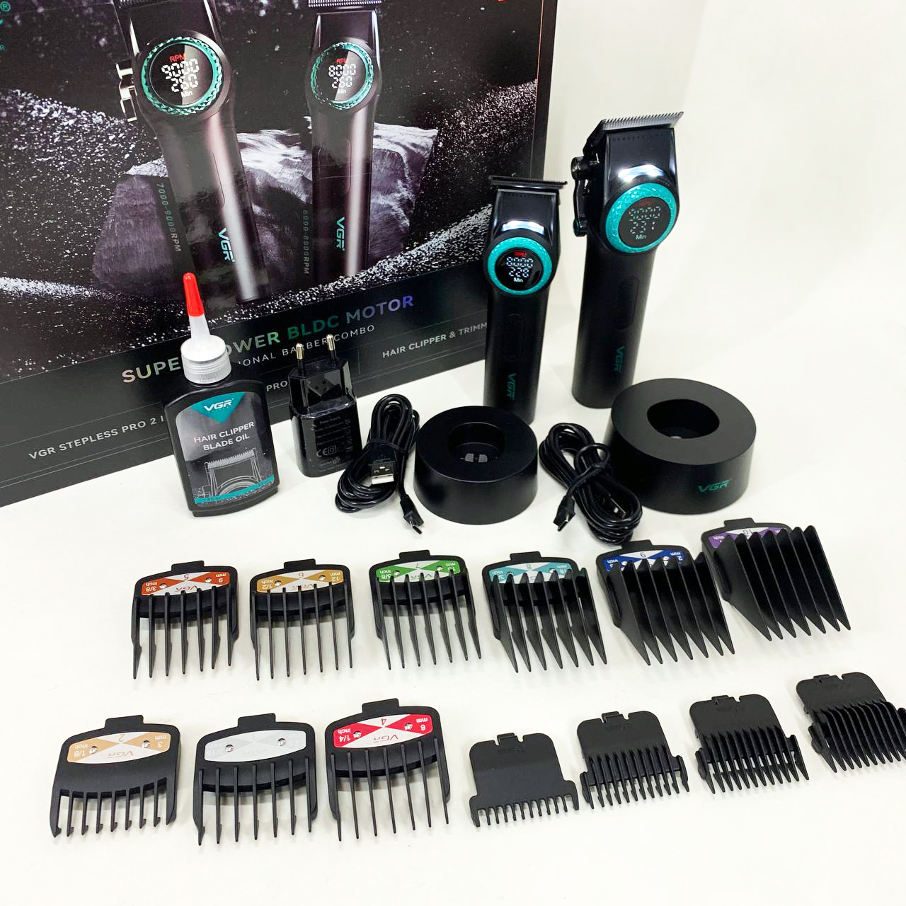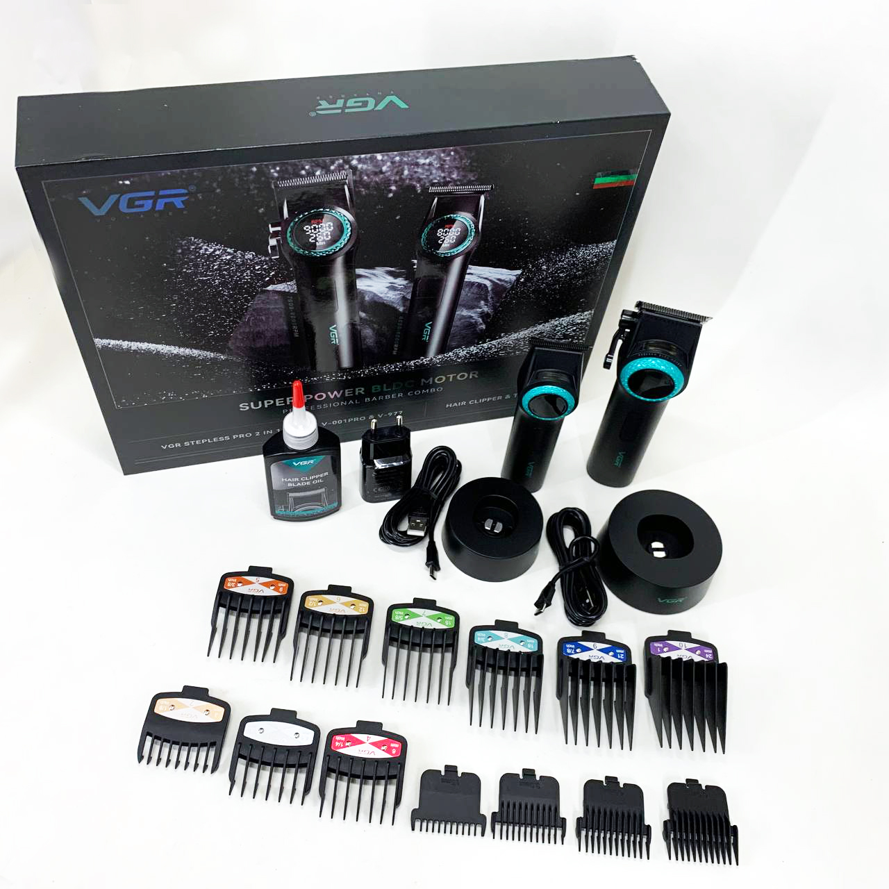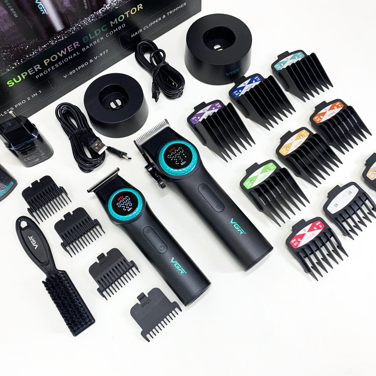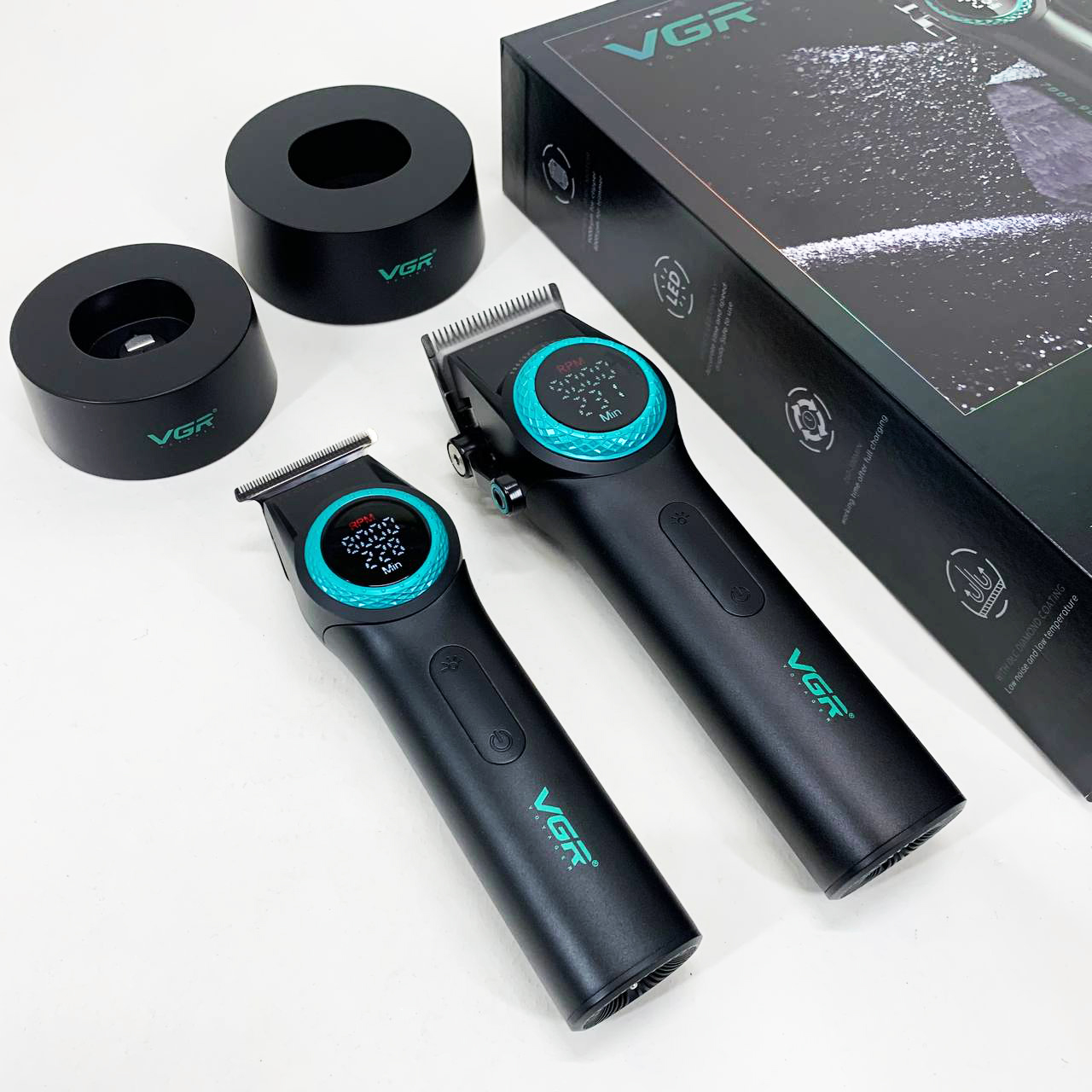 VGR V-001 & V-977 — це преміальний набір для догляду за волоссям, що включає високопродуктивну машинку для стрижки волосся та триммер з регульованою швидкістю, керамічними лезами та тривалим часом роботи від акумулятора. Завдяки 14 насадкам-гребінцям, світлодіодним дисплеям, ергономічному дизайну та подвійним опціям зарядки, він забезпечує точні, професійні результати як для перукарів, так і для домашніх користувачів.