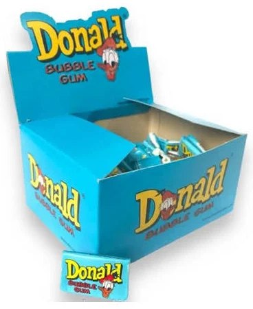Упаковка жувальної гумки Donald Bubble Gum виконана в яскравому, привабливому стилі, що привертає увагу з першого погляду. Кожна гумка запакована в індивідуальну обгортку з зображенням улюблених персонажів, що створює додаткову радість і для дітей, і для дорослих. Такий дизайн робить жуйки не тільки смачними, але й візуально привабливими.