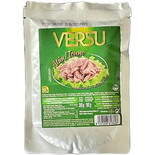 Versu - испанский бренд консервированных морепродуктов, в частности тунца бонито. Продукция производится в Испании из высококачественного филе, в основе натуральные ингредиенты: тунец, масло (подсолнечное или оливковое), вода и соль.
