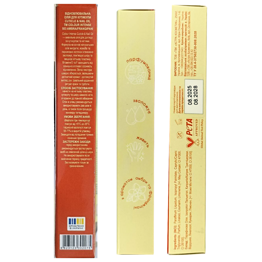 Парфумована олія для кутикули та нігтів Colour Intense Cuticle & NailПарфумована олія для кутикули та нігтів допоможе зберігати руки красивими та доглянутими. Формула на основі натуральних олій мигдалю, жожоба та персикових кісточок глибоко живить і зволожує нігтьову пластину та прилеглу шкіру, стимулюючи ріст здорових і міцних нігтів.Переваги:пом'якшує суху та пошкоджену шкіру кутикули, нігті;