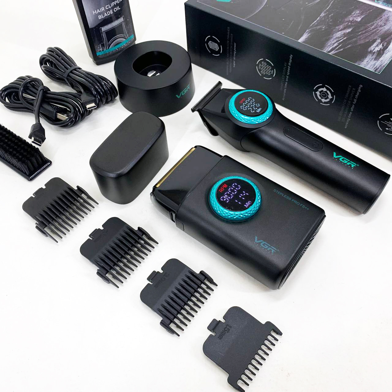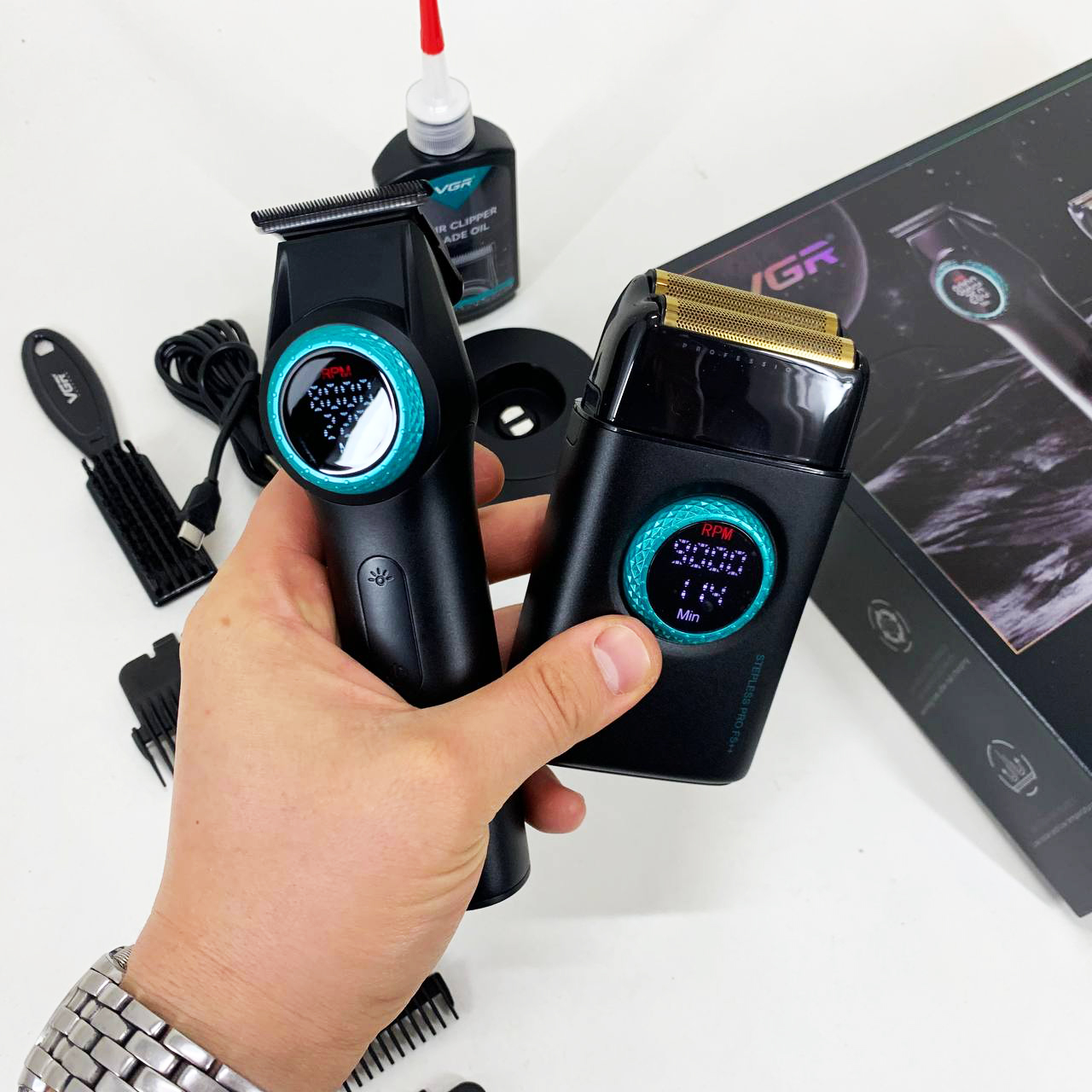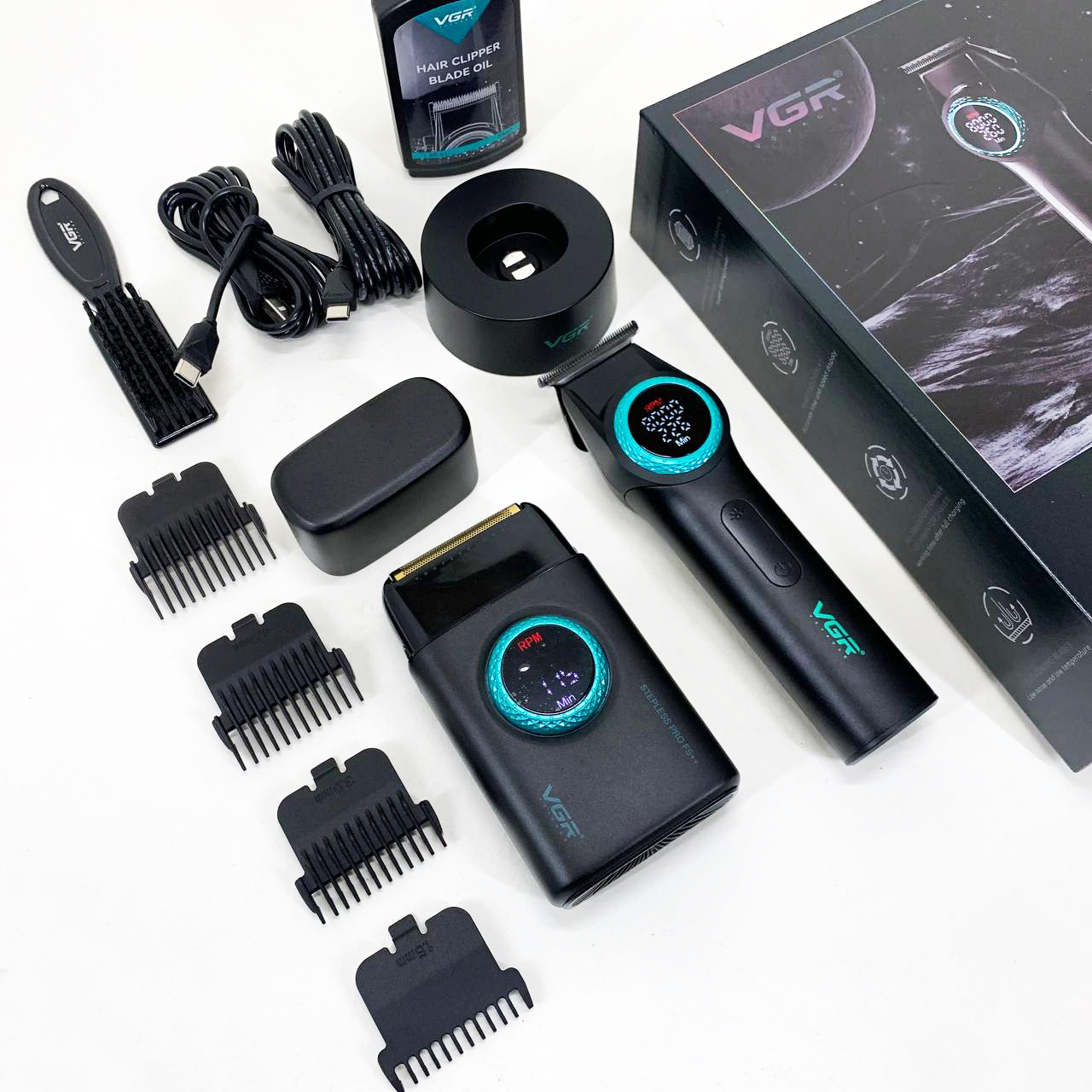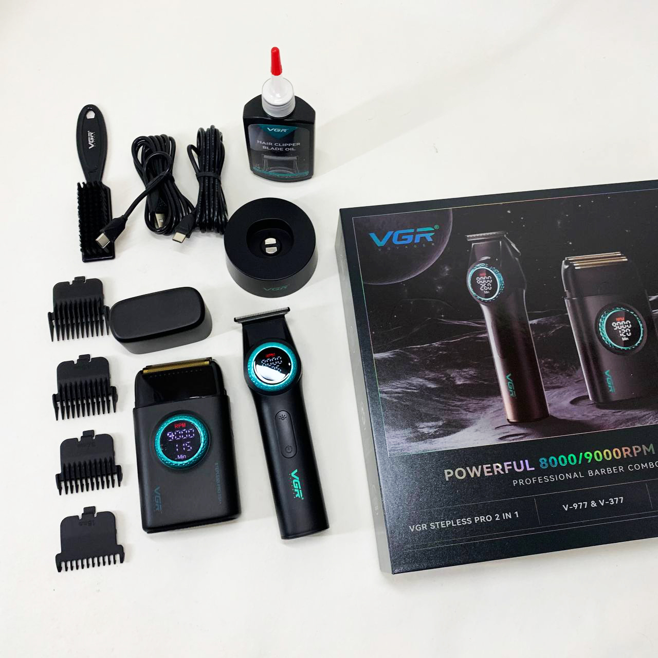 Професійний перукарський комбінований пристрій VGR V-977 & V-377 — це ідеальний набір для догляду, розроблений для тих, хто прагне точності та ефективності. Тример оснащений лезами з DLC-покриттям і потужним двигуном 6000-8000 об/хв, а бритва – подвійними титановими сітками та двигуном 7000-9000 об/хв, що забезпечує плавний та точний догляд. Цей набір пропонує 21-й регульований рівень швидкості, інтелектуальні світлодіодні дисплеї та можливість роботи як від мережі, так і бездротової для максимальної гнучкості.