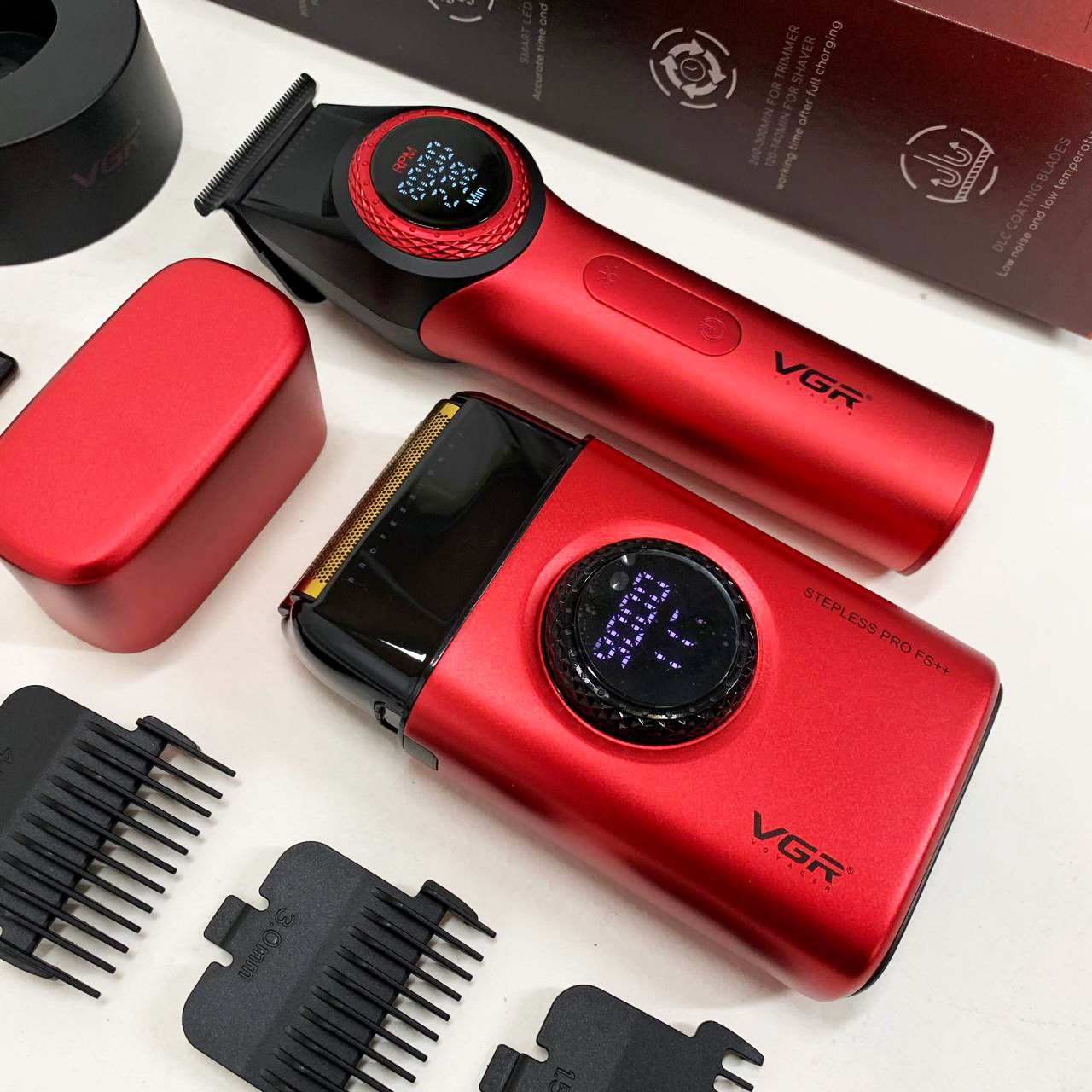 Професійний набір VGR V-977 та V-377 забезпечує точний догляд. Оснащений лезами з DLC-покриттям, подвійними титановими фольгами та потужними двигунами (6000-9000 об/хв), він забезпечує плавну роботу. Цей універсальний комбінований набір має 21 рівень швидкості, світлодіодні дисплеї та функцію роботи як від мережі, так і від бездротової. Завдяки довговічним батареям (300 хвилин для тримера, 140 хвилин для бритви) та аксесуарам, що входять до комплекту, таким як насадки-гребінці, мастило та USB-зарядна база, він забезпечує зручність та ефективність в одному портативному пакеті. Компанія VGR, якій довіряють професіонали, встановлює нові стандарти догляду за собою.