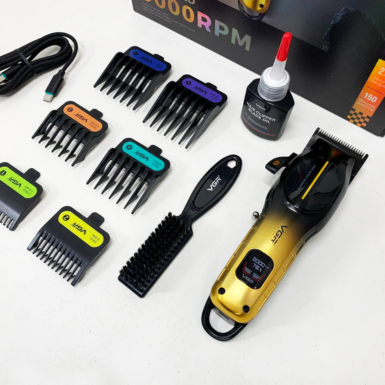 Машинка для стрижки волосся на акумуляторі VGR V-026 — це універсальний і надійний інструмент для догляду за волоссям, що підходить як для професійних салонів, так і для домашнього використання. Тример для стрижки VGR V-026 GOLD оснащений потужним мотором зі швидкістю обертання 9000 об/хв, що забезпечує швидкий та рівний зріз волосся. Леза з нержавіючої сталі гарантують точність та довговічність роботи, а металевий корпус надає міцності та довговічності пристрою. LED дисплей інформує про стан акумулятора та вибрані режими роботи, що робить використання тримера зручним та контрольованим.