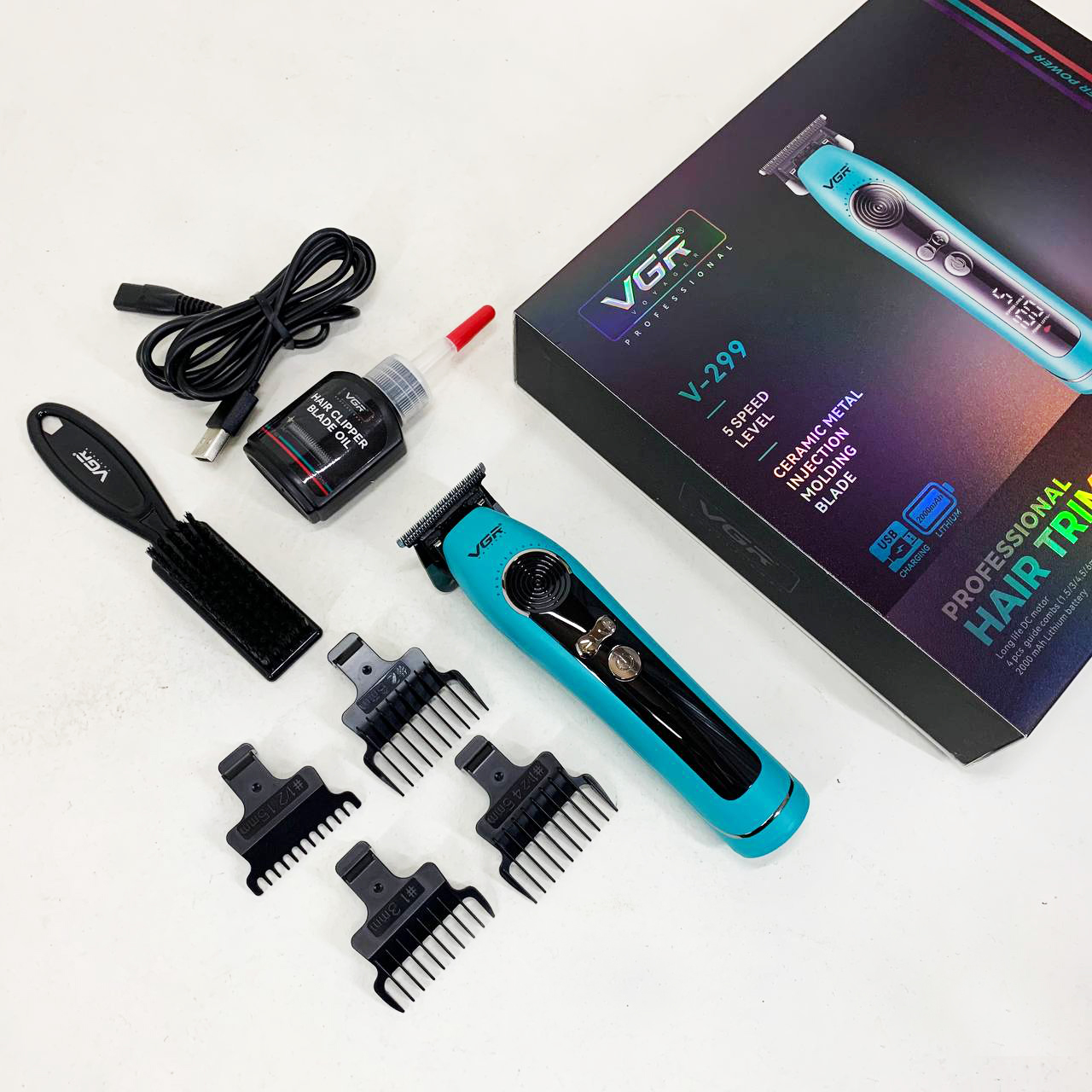 Модель комплектується 4 насадками та підтримує 5 рівнів регулювання швидкості, що дозволяє точно налаштовувати роботу тримера під конкретні завдання — від точного окантування до догляду за густою бородою. LED-дисплей відображає рівень заряду, поточну швидкість, а також нагадування про необхідність обслуговування, забезпечуючи контроль та зручність у процесі експлуатації. VGR V-299 BLACK — це поєднання потужності, точності та функціональності в одному стильному та практичному пристрої.