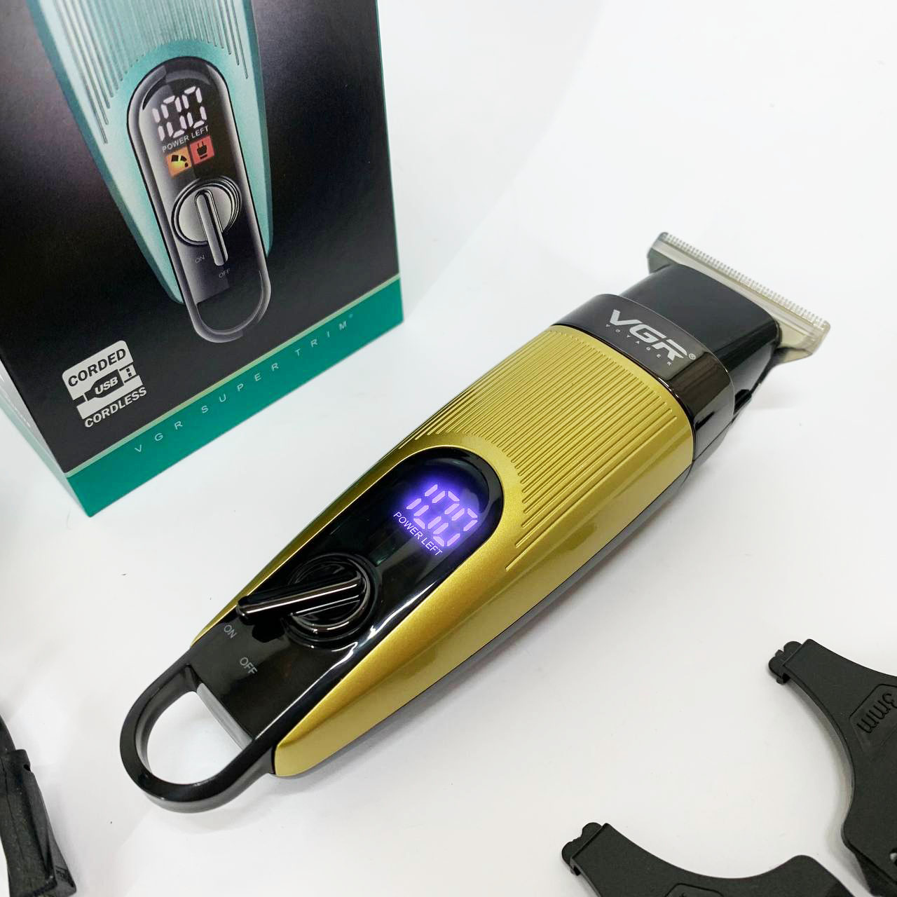 Машинка для стрижки волосся VGR V-975 тример для бороди та вусів. Колір: золотий