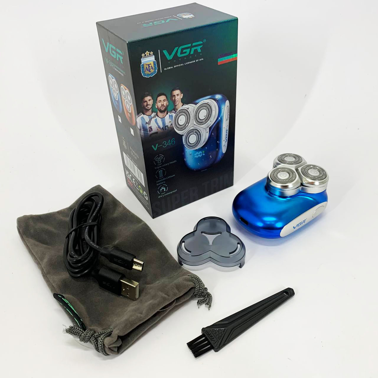 Електроритва VGR V-346 обладнана лезами з нержавіючої сталі та вбудованим LED-дисплеєм, що відображає рівень заряду. Прилад працює від літій-іонного акумулятора ємністю 700 мАг, забезпечуючи до 80 хвилин автономної роботи. Час повної зарядки складає 2,5 години, зарядка здійснюється через USB, що зручно для використання вдома та в поїздках.