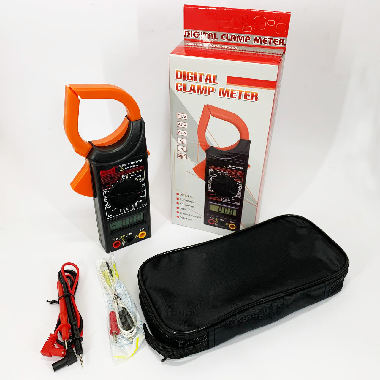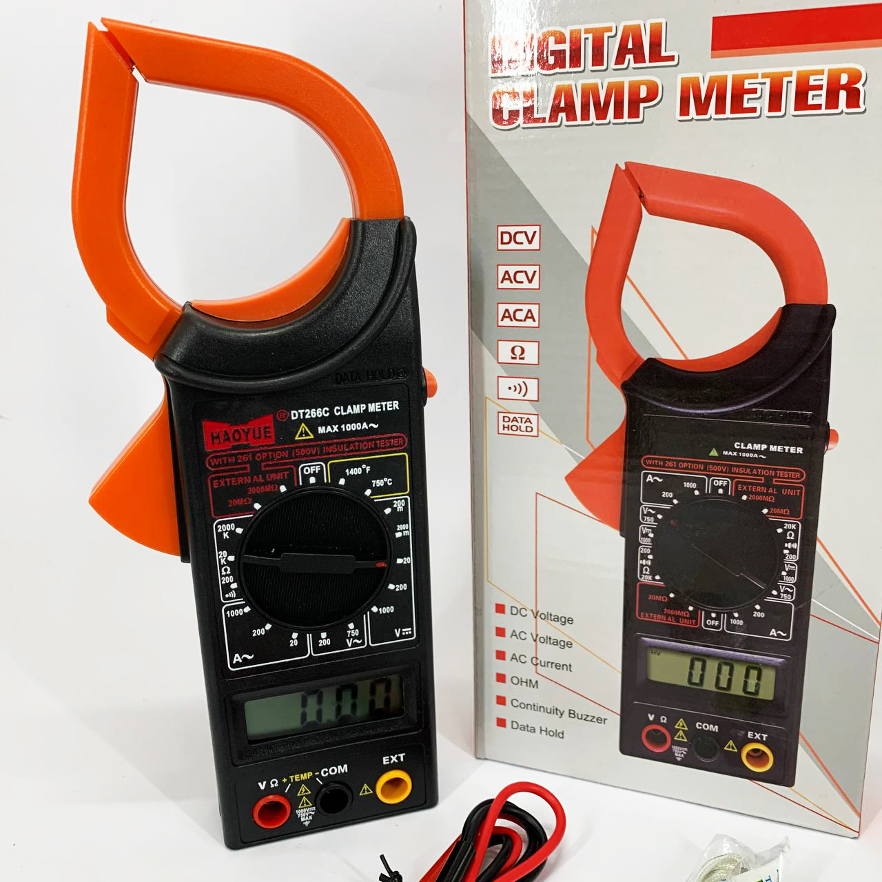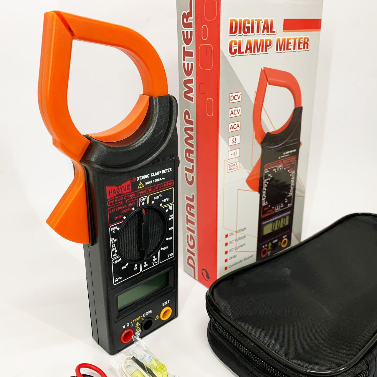 Кліщовий мультиметр HAOYUE DT266C з термопарою, чохлом та щупами — вимірювач струму до 1000А із функцією вимірювання температури