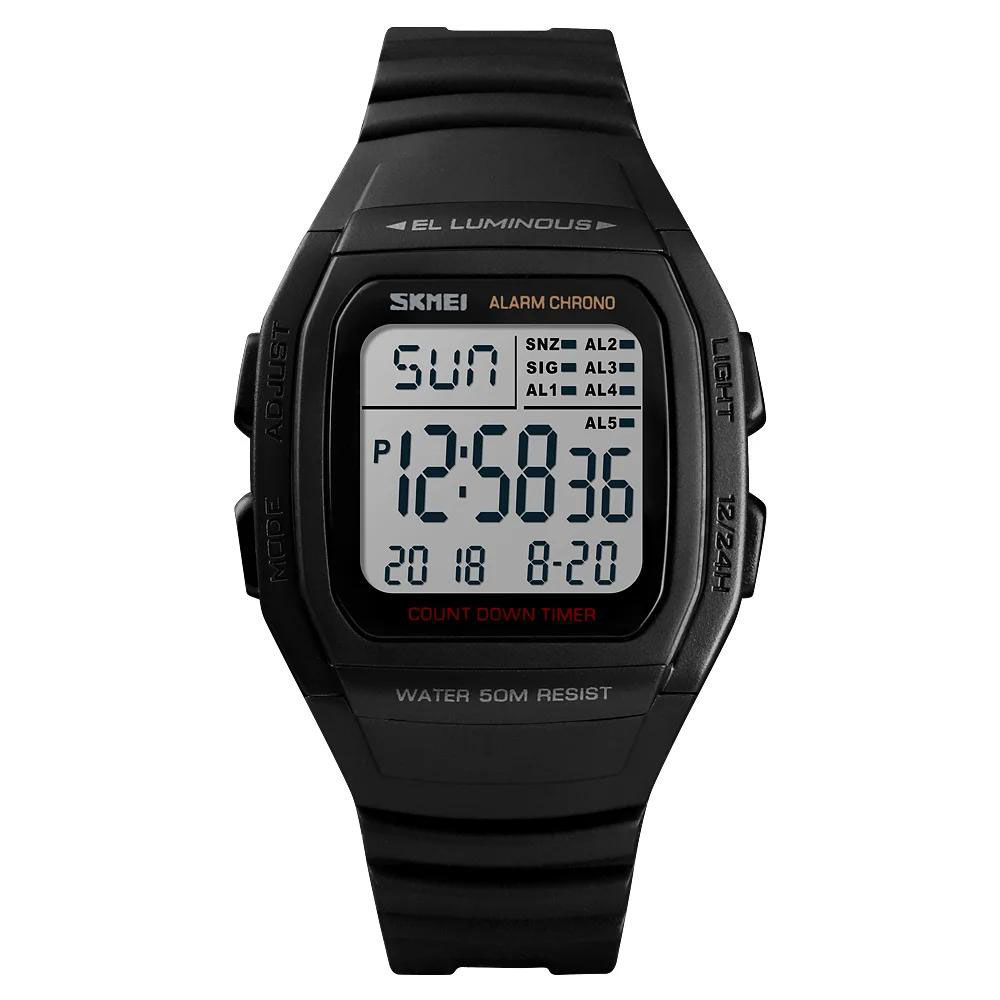 SKMEI 1278BK — це надійний цифровий годинник у стриманому чорному дизайні, який поєднує у собі лаконічний зовнішній вигляд і практичний функціонал. Його універсальний стиль підходить як для повсякденного носіння, так і для активного відпочинку. Великий екран із чітким відображенням часу, дати й дня тижня гарантує комфортне користування в будь-яких умовах.