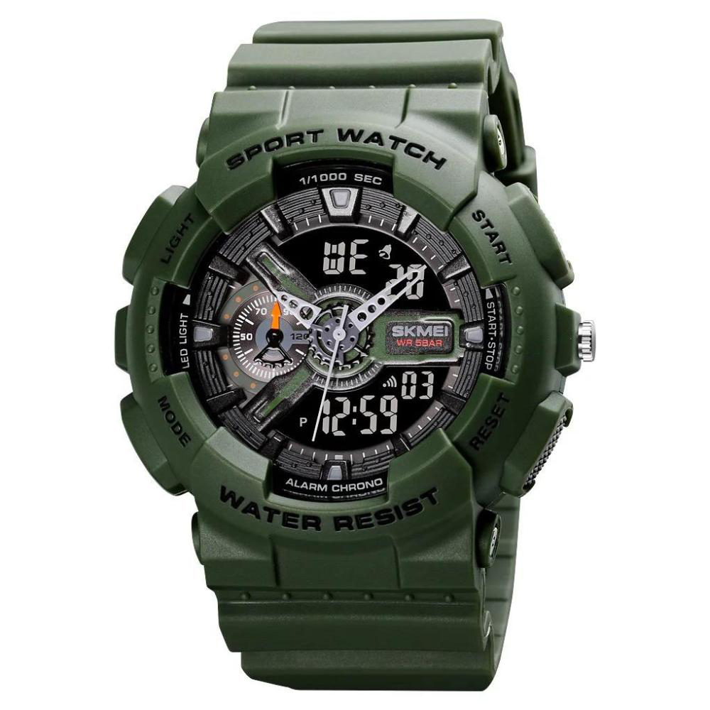 Годинник SKMEI 1688AG — це потужний спортивний аксесуар, створений для активних чоловіків, які цінують функціональність, витривалість і стиль. Модель виконана в захисному зеленому кольорі з масивним корпусом, що виглядає агресивно й мужньо. Аналогово-цифровий дисплей дозволяє зручно зчитувати час, а яскраве підсвічування забезпечує відмінну видимість у темряві.