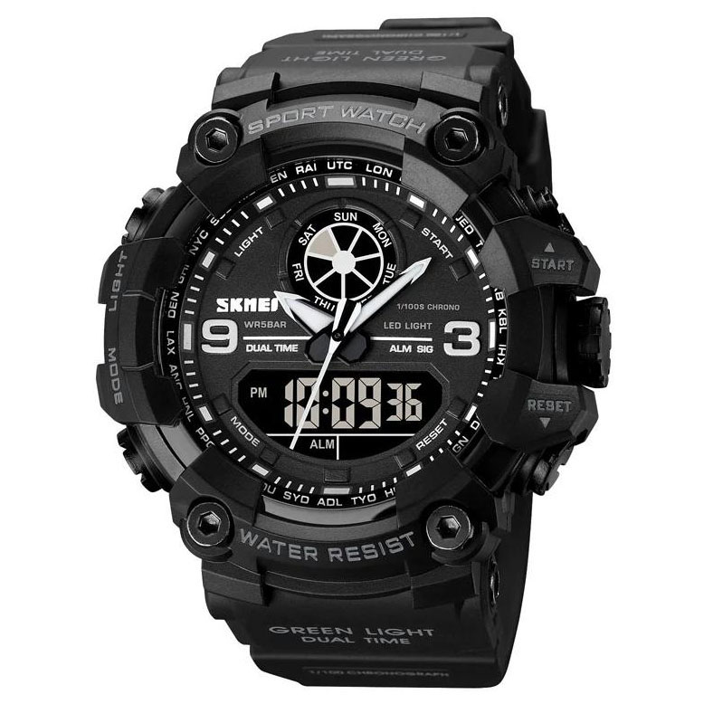 Цей хронометр стане вірним супутником як у повсякденному житті, так і під час активного відпочинку. Серед його функціоналу — подвійний час, секундомір, будильник, автоматичний календар, день тижня та світовий час. Водозахист до 50 м дозволяє не знімати годинник під час душу чи плавання. SKMEI 1818BK — це функціональність, стиль і надійність в одному корпусі.