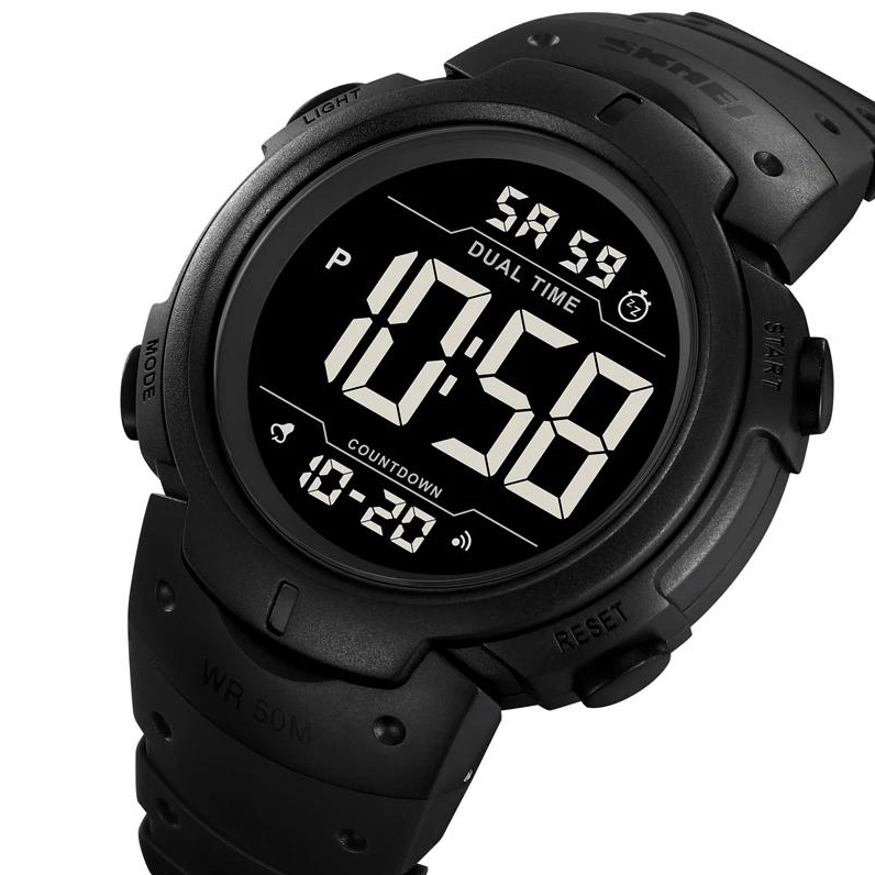 SKMEI 2304BKBK — це практичний цифровий годинник у повністю чорному кольорі, який ідеально поєднує мінімалізм, зручність і витривалість. Завдяки стриманому дизайну, круглій формі корпусу та ергономічному розміщенню кнопок модель виглядає стильно і водночас функціонально. Великий дисплей з чіткими цифрами забезпечує швидке зчитування інформації за будь-яких умов.
