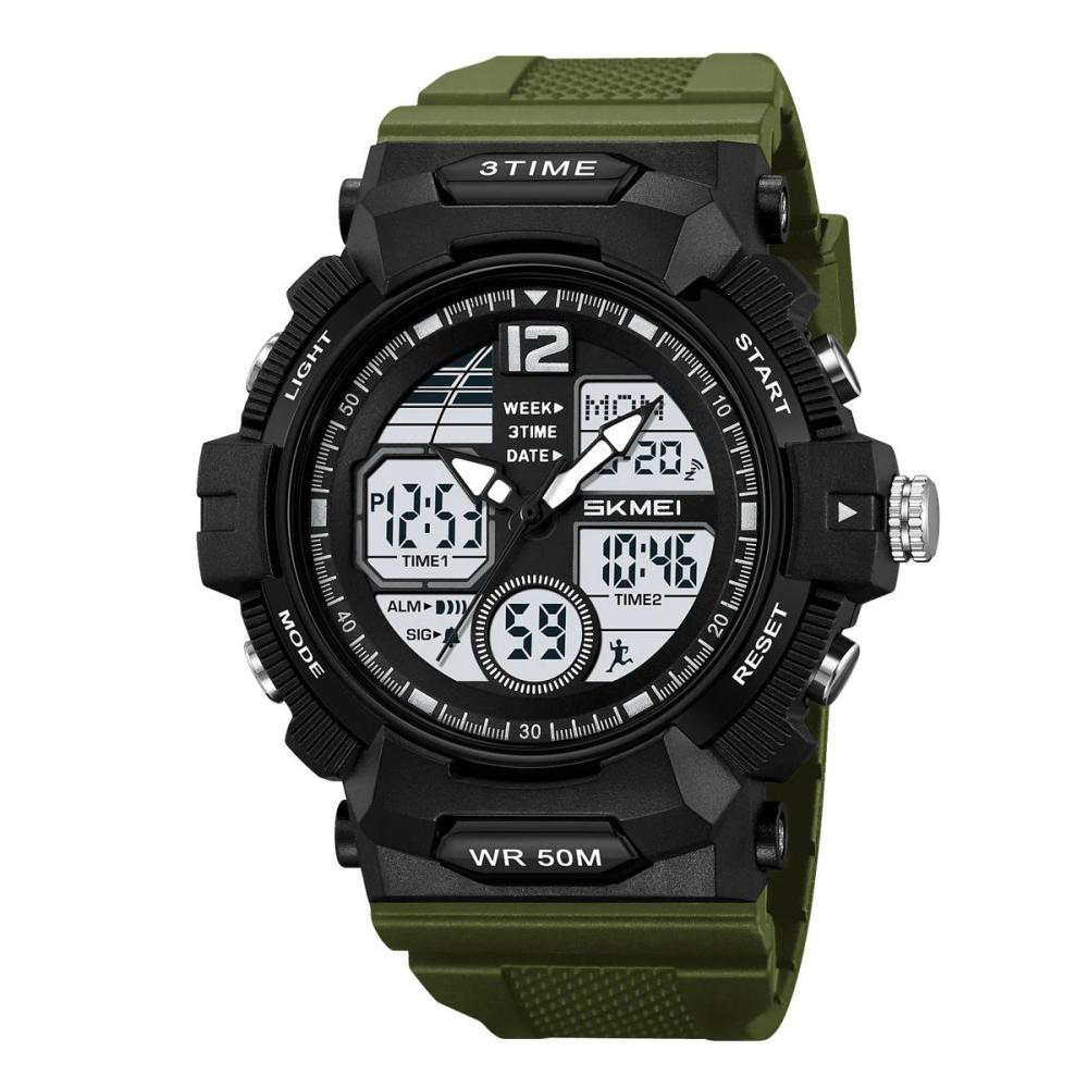 Годинник SKMEI 2354AG — це потужний і сучасний аксесуар для активних чоловіків, які цінують практичність і стиль. Його масивний корпус у поєднанні з насиченим зеленим ремінцем та багатофункціональним дисплеєм надає моделі військово-спортивного вигляду. Аналогово-цифрова індикація дозволяє легко орієнтуватися в часі, незалежно від умов навколишнього середовища.