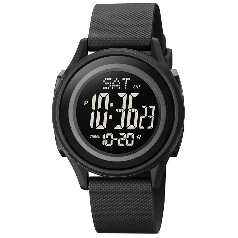 SKMEI 1893BKBK — це цифровий годинник у монохромному стилі, який ідеально підійде для активного способу життя, тренувань або повсякденного використання. Повністю чорний корпус із матовим оздобленням, великий круглий дисплей та рельєфний ремінець створюють лаконічний, але сучасний вигляд. Завдяки зручному інтерфейсу та яскравому екрану, зчитувати дані дуже легко навіть під час руху.