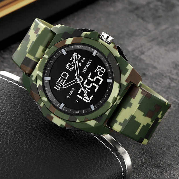 Годинник SKMEI 2199CMGN — це вибір тих, хто цінує практичність, витривалість і унікальний зовнішній вигляд. Камуфляжний дизайн у цифровому стилі надає йому виразного характеру, що ідеально підходить для активного відпочинку, туризму або військового стилю в одязі. Комбінація аналогової та цифрової індикації дозволяє швидко орієнтуватися в часі, а контрастний дисплей забезпечує відмінну видимість у будь-який час доби.