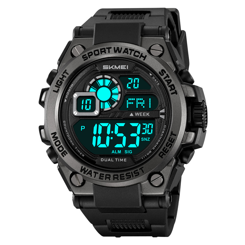 Цей електронний годинник оснащений великим дисплеєм з чіткою підсвіткою, що забезпечує легке зчитування інформації в будь-який час доби. Модель підтримує функцію подвійного часу, будильник, секундомір, таймер зворотного відліку, а також автоматичний календар, що робить SKMEI 2318BKWT практичним помічником у будь-якій ситуації.