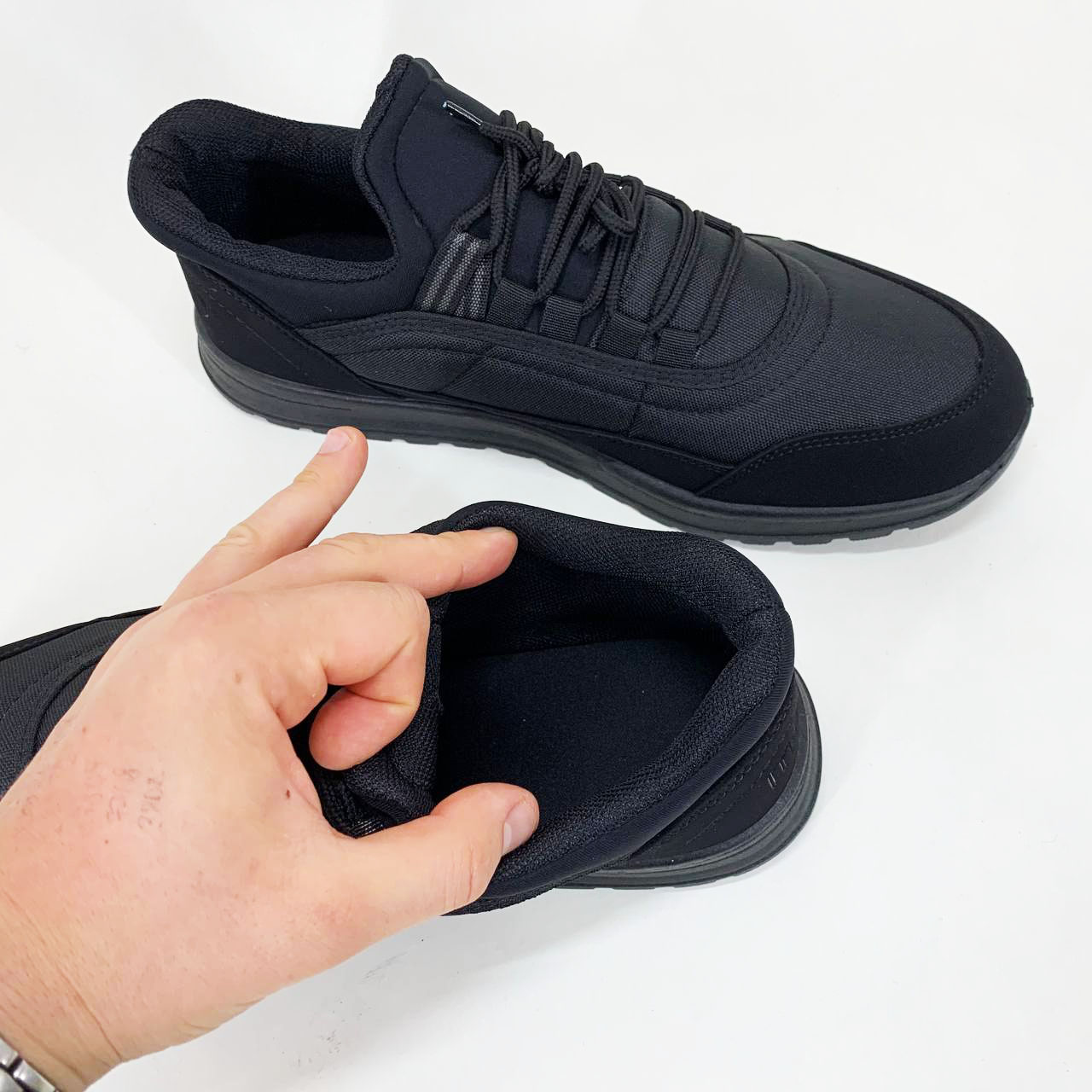 Утеплені кросівки — це комфортне та практичне рішення для міжсезоння й м’якої зими. Завдяки своєму універсальному чорному дизайну, модель ідеально підійде як для повсякденного використання, так і для активного відпочинку. Верх виготовлений із щільного текстилю з додатковими вставками зі штучної замші, які підвищують зносостійкість та покращують зовнішній вигляд.