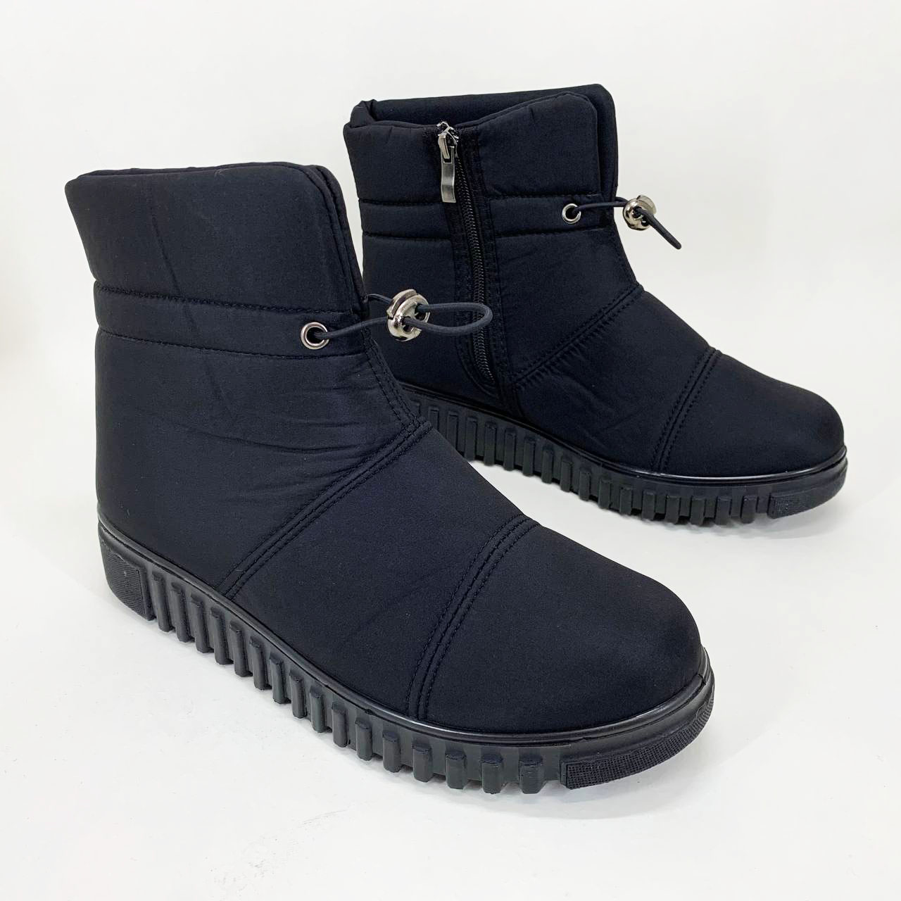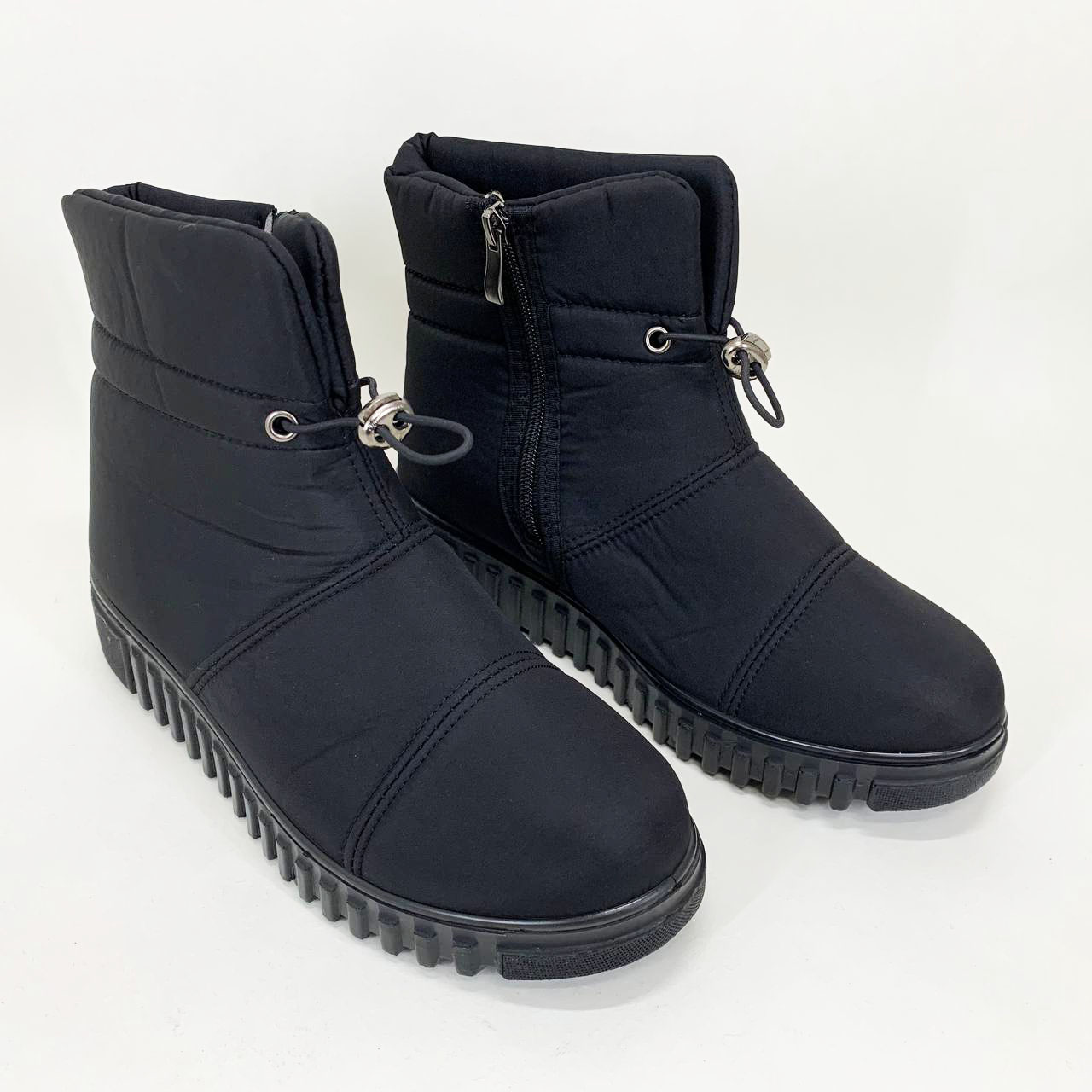 Жіночі зимові черевики — це вдале поєднання елегантного стилю та практичної функціональності. Модель виконана в лаконічному чорному кольорі з акцентом на зручність і повсякденний комфорт. Завдяки утепленій внутрішній частині взуття надійно зберігає тепло, а декоративна стяжка з фіксацією додає образу сучасного вигляду.