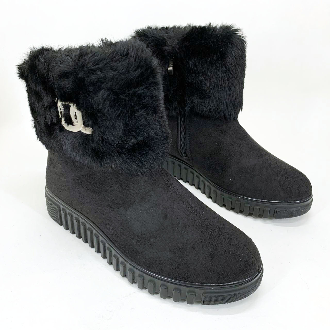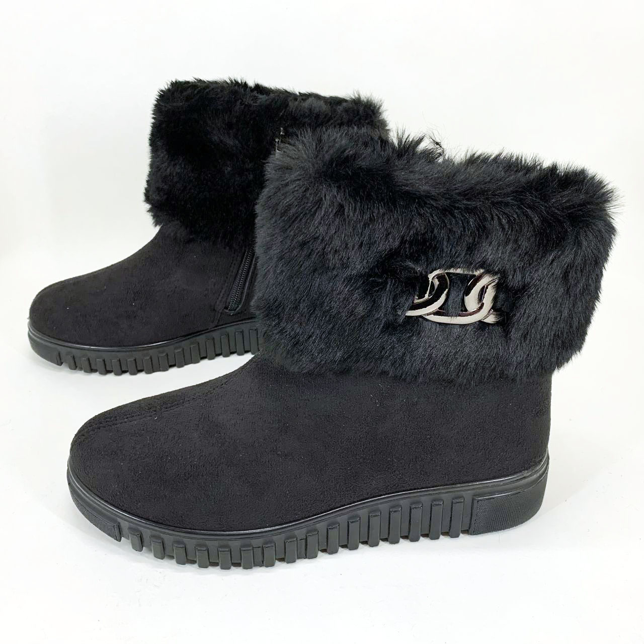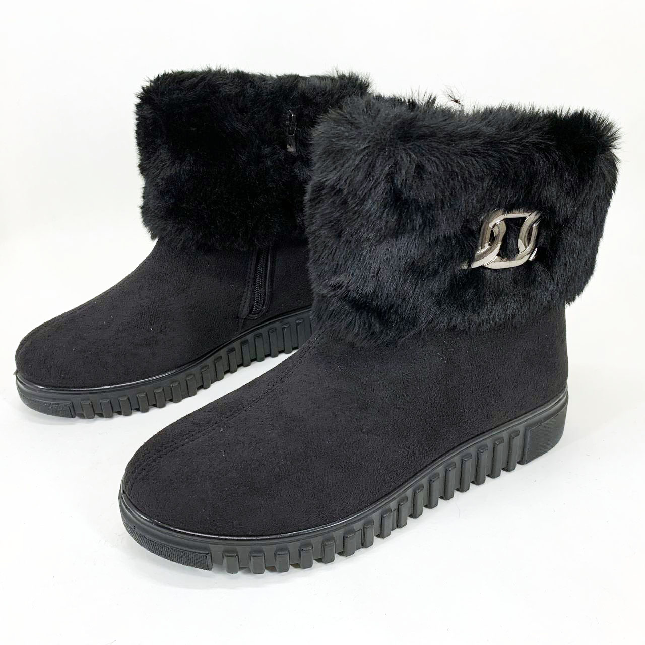 Жіночі утеплені черевики — це вдале поєднання тепла, стилю та практичності. Верх моделі виконаний з м’якого матеріалу з ефектом повсті, а декоративне хутро з широким вилогом додає образу елегантності. Металева пряжка з боку створює стильний акцент, що привертає увагу і доповнює зимовий образ.