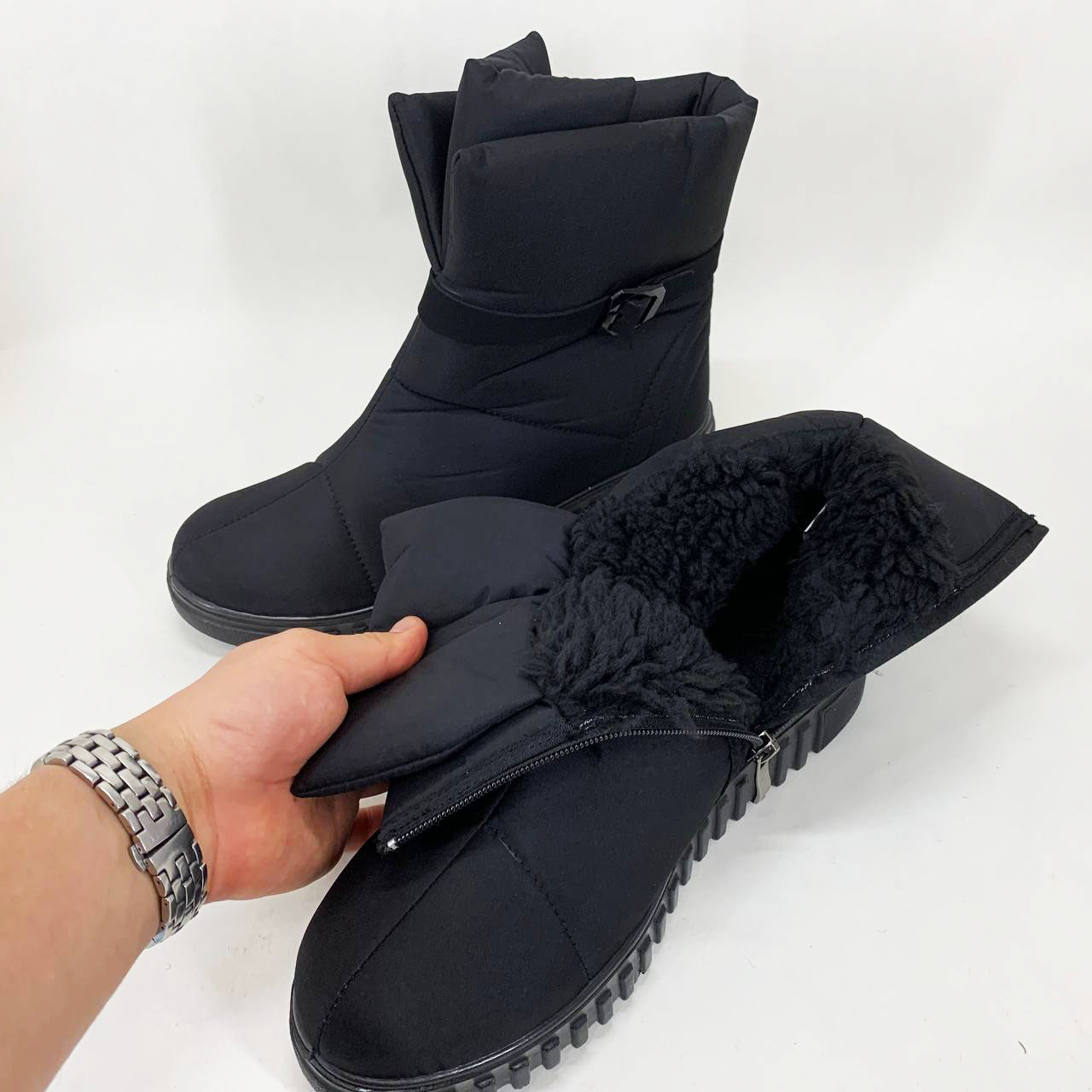 Ці жіночі утеплені чоботи в чорному кольорі — стильне та функціональне рішення для холодної пори року. Візуально модель вирізняється завдяки елегантному дизайну з об’ємним верхом і декоративним ремінцем із глянцевою пряжкою. Чоботи виглядають сучасно, але при цьому зберігають класичну стриманість, що дозволяє легко поєднувати їх із будь-яким зимовим гардеробом.