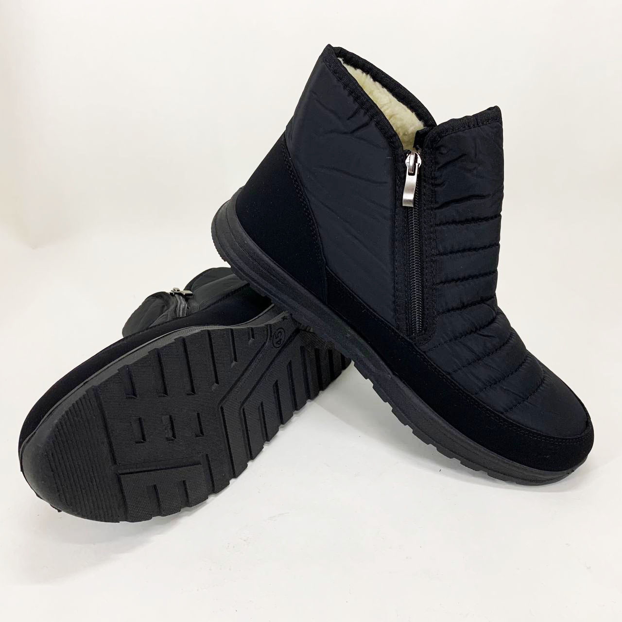 Зсередини черевики утеплені м’яким штучним хутром, що зберігає тепло навіть у холодну пору. Завдяки легкій і гнучкій підошві, модель не обтяжує ногу й забезпечує комфорт при тривалому носінні. Вони добре підходять для щоденного використання в місті, на роботі або під час прогулянок. Стриманий чорний дизайн легко поєднується з різними стилями одягу.
