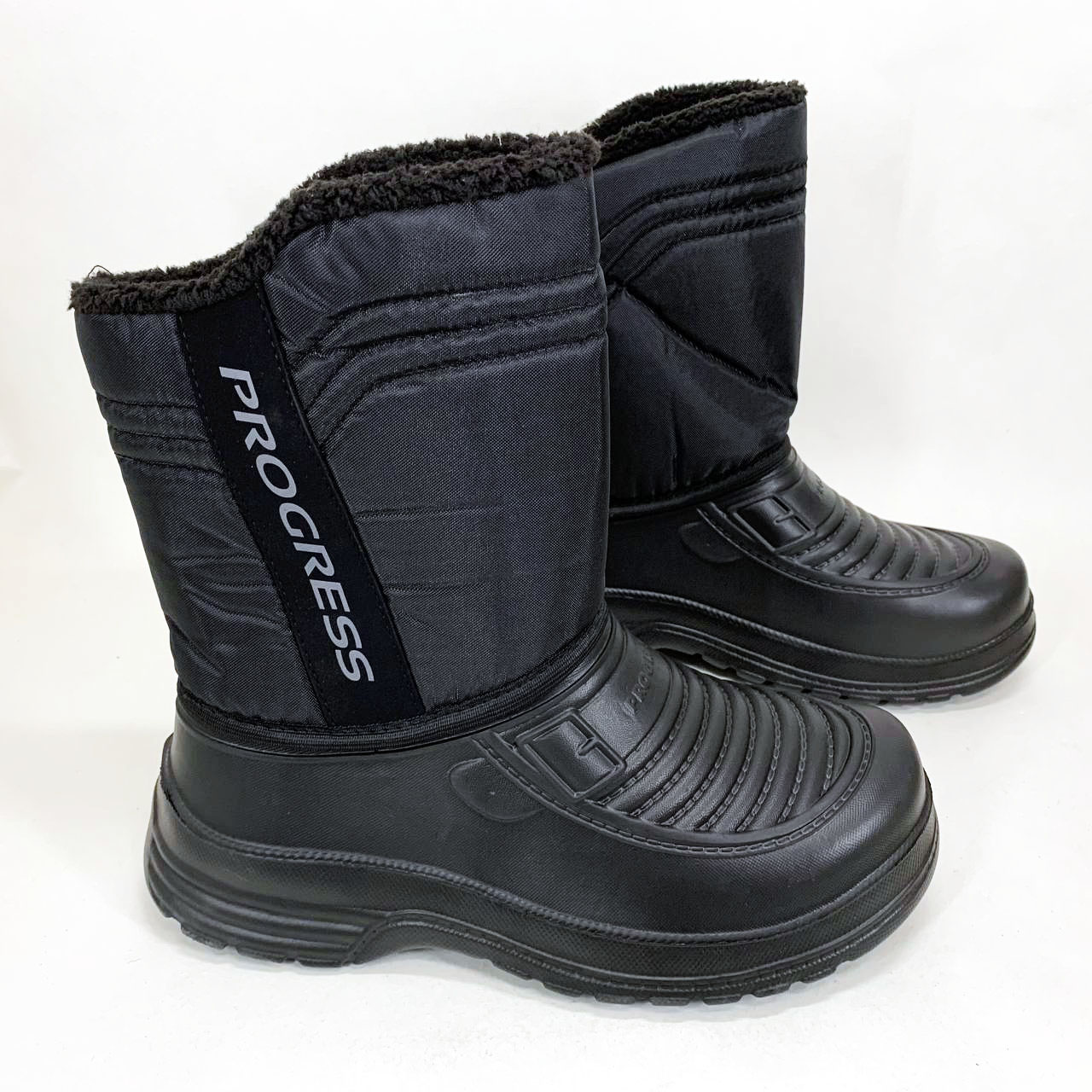 Зимові чоботи Progress — це оптимальний вибір для чоловіків, які шукають надійне та практичне взуття для холодної пори року. Модель поєднує сучасний дизайн з високим рівнем термозахисту. Верх виготовлений із щільного текстилю, а нижня частина — з литого ЕВА, що не пропускає вологу. Завдяки чорному кольору чоботи легко поєднуються з будь-яким одягом.