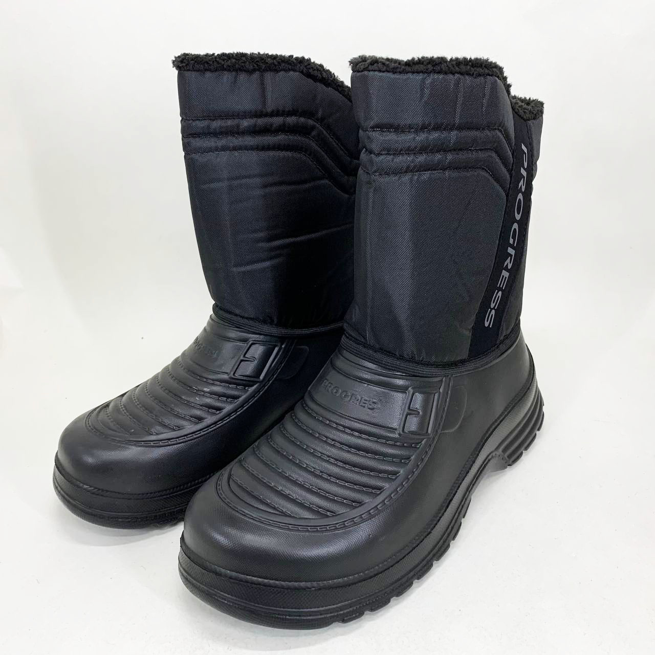 Зимові чоботи Progress — це оптимальний вибір для чоловіків, які шукають надійне та практичне взуття для холодної пори року. Модель поєднує сучасний дизайн з високим рівнем термозахисту. Верх виготовлений із щільного текстилю, а нижня частина — з литого ЕВА, що не пропускає вологу. Завдяки чорному кольору чоботи легко поєднуються з будь-яким одягом.