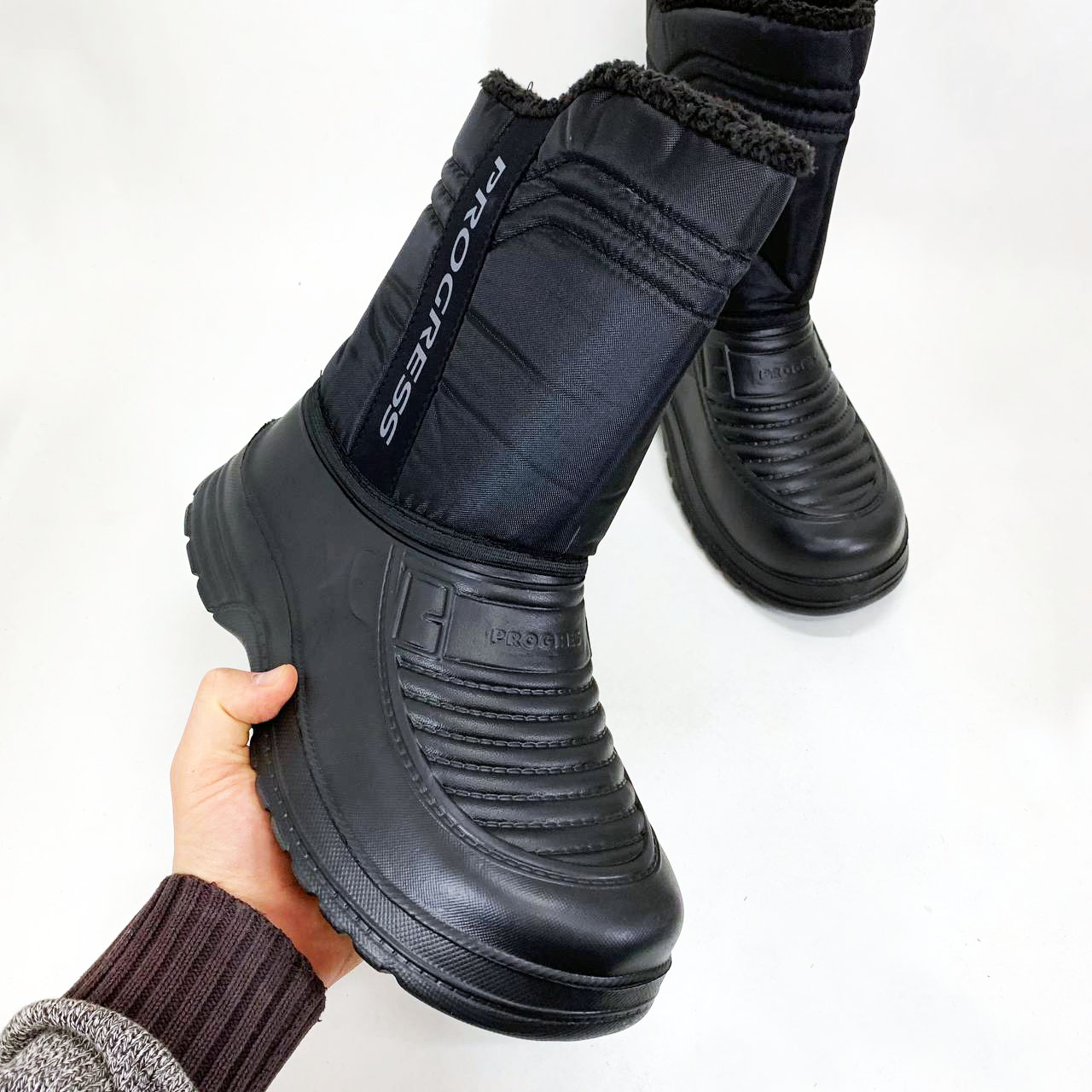 Зимові чоботи Progress — це оптимальний вибір для чоловіків, які шукають надійне та практичне взуття для холодної пори року. Модель поєднує сучасний дизайн з високим рівнем термозахисту. Верх виготовлений із щільного текстилю, а нижня частина — з литого ЕВА, що не пропускає вологу. Завдяки чорному кольору чоботи легко поєднуються з будь-яким одягом.