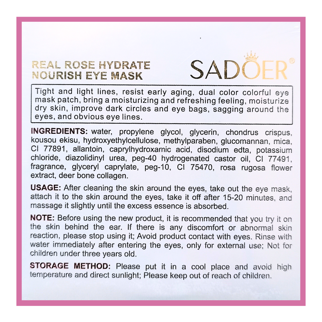 Патчі для шкіри навколо очей зволожувальні Sadoer Real Rose Eye Mask гідрогелеві, 60 шт
