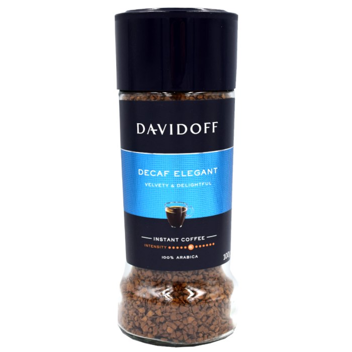 Davidoff Dek (Decaf Elegant) Instant Coffee 100 г — це преміальна розчинна кава, яка дарує насолоду смаком без вмісту кофеїну. Виготовлена з 100 % зерен арабіки, зібраної з найкращих регіонів, ретельно підібрана для забезпечення вершково-м’якого смаку.