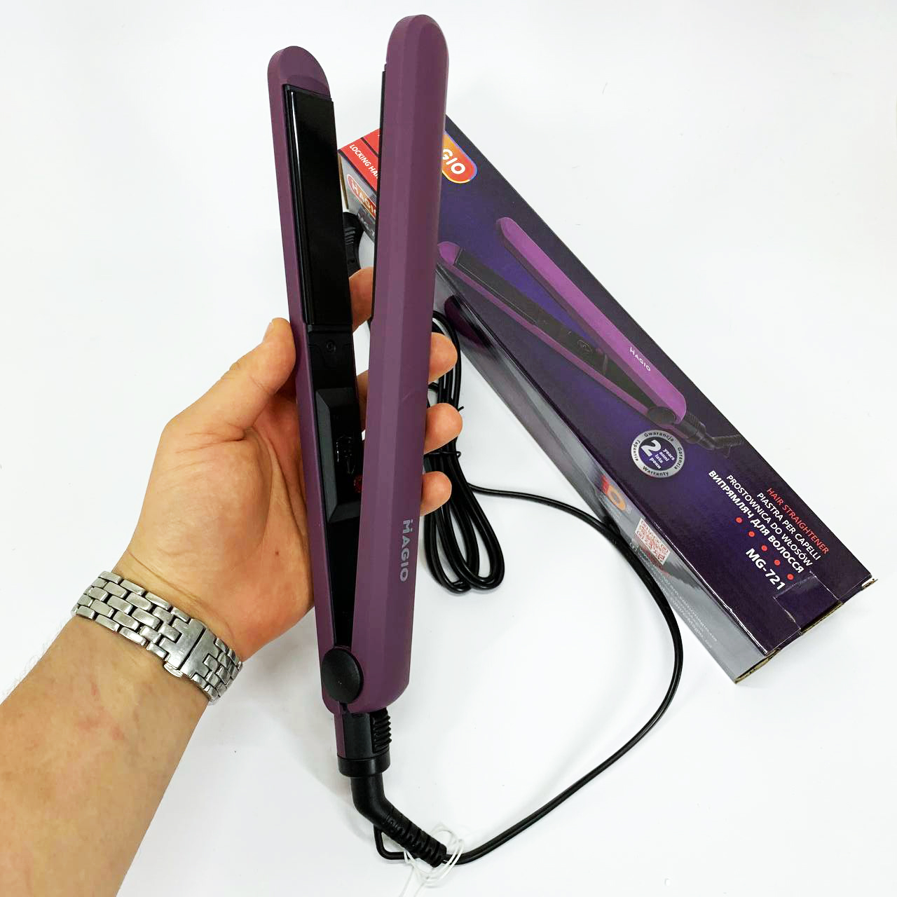 Матеріал поверхні робочих пластин – двошарова кераміка, що впливає не лише на кінцевий результат зачіски, а й на здоров’я волосся. Такий вид пластин завдає найменшої шкоди, швидко та рівномірно нагріваються, легко ковзають по волоссю та запобігають електризації. Випрямляч оснащений подовженими (90мм) нагрівальними пластинами шириною 24 мм, які дозволяють досягти ідеальних результатів за більш короткий час. Випрямляч швидко нагрівається і буде готовий до використання менше ніж за хвилину. Петелька для підвішування і обертається шнур на 360° довжиною в 1,8 м створюють додаткову зручність при використанні.