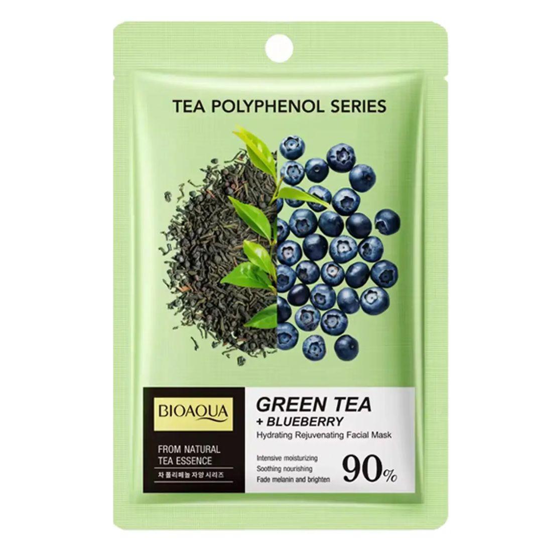 Маска для обличчя омолоджувальна Bioaqua Green Tea+ Blueberry тканинна 25 мл