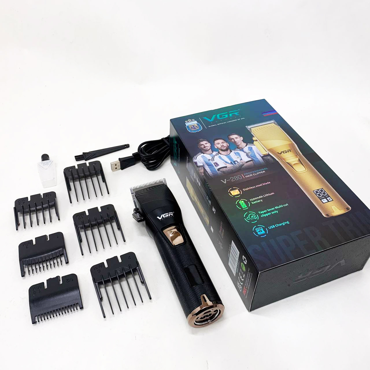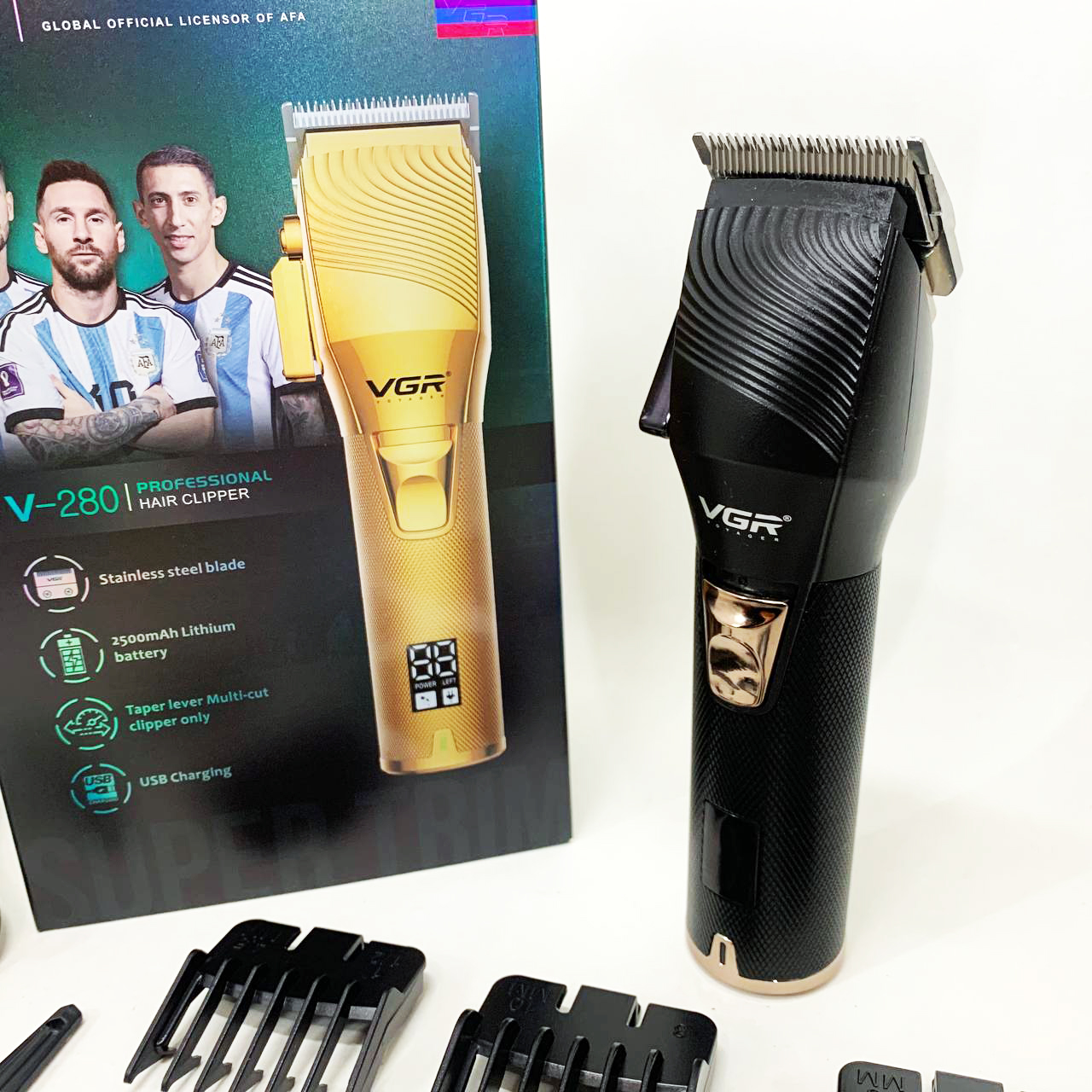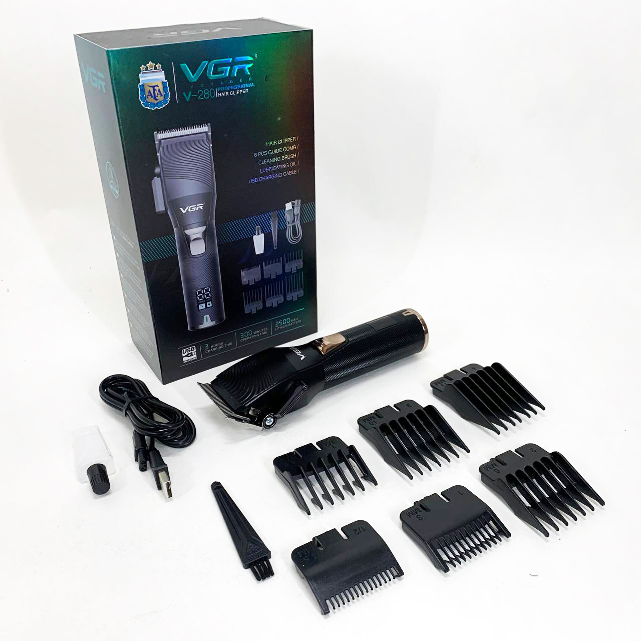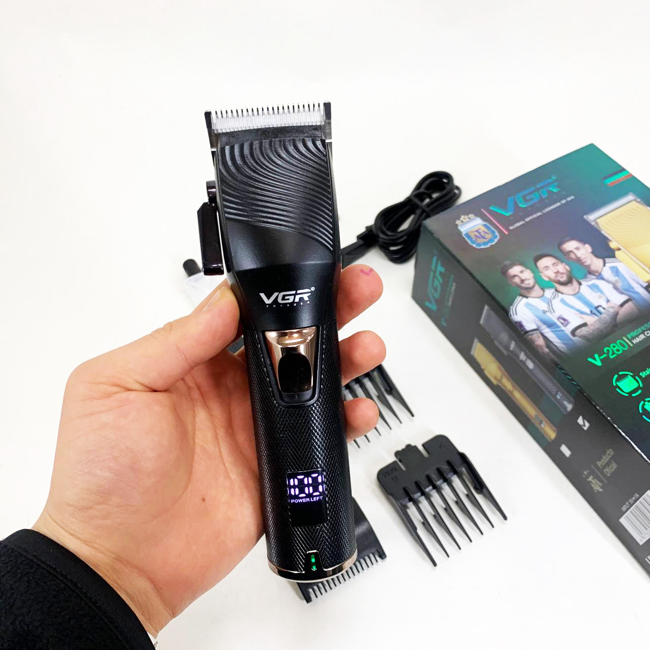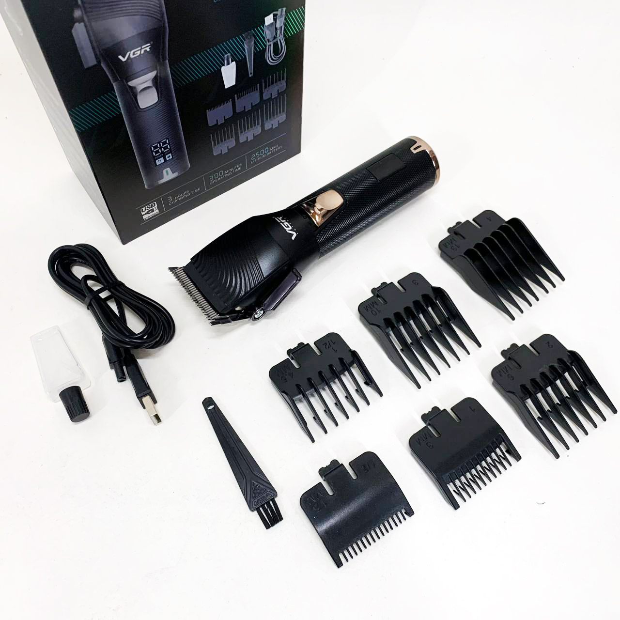 Акумуляторна машинка для стрижки волосся VGR V-280 з дисплеєм та насадками якісна. Колір: чорний