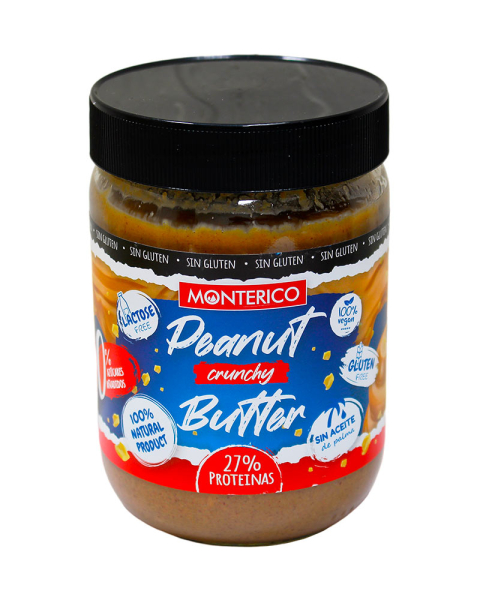 Арахісова паста без цукру Monterico Peanut Butter Cranchy 0% Azucares дарує особливий хрускіт із хрусткими смаженими шматочками арахісу. Не містить лактози, глютена, пальмової олії, підходить для веганів.