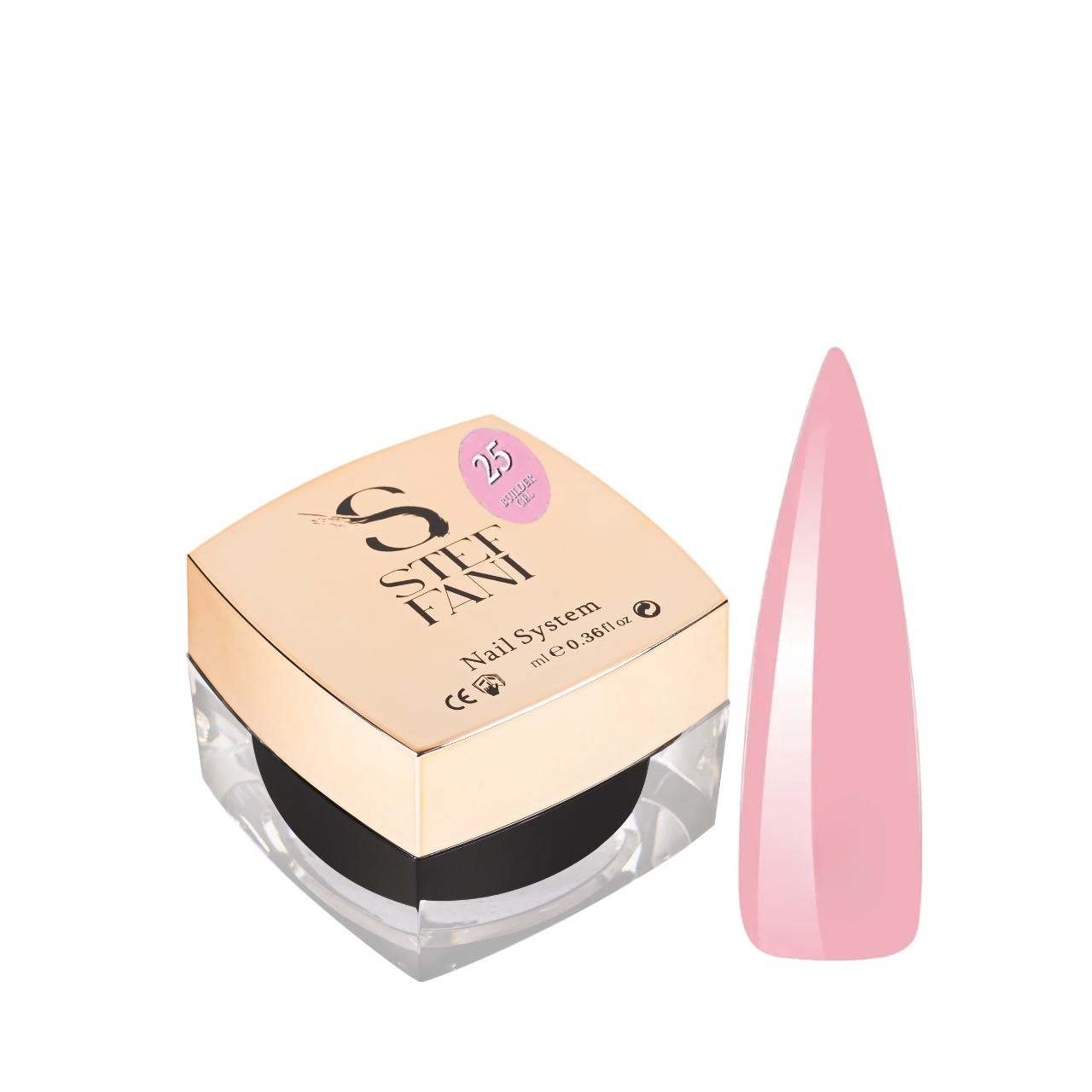 Моделюючий камуфлюючий гель для нарощування нігтів Steffani Builder Gel для одно- та трифазної системиSteffani Builder Gel – універсальний та зручний гель для моделювання нігтьової пластини. Низькотемпературна, середньої консистенції, тому рівномірно розподіляється та самовирівнюється.Моделюючий манікюрний гель використовується в однофазній та трифазній системах. Гель дозволяє створити міцне покриття, побудувати правильну архітектуру та працювати без обпилювання. Добре тримає арку і не деформується.Підходить для нарощування на нижні форми, нарощування в техніці без мінімального обпилювання, корекції нарощування, моделювання нігтьової пластини та зміцнення нігтів.Спосіб застосування:Проведіть стандартну підготовку нігтя: зніміть попереднє покриття, забафьте нігтьову пластину, надайте їй бажану форму та зробіть манікюр. Нанесіть Steffani Ultrabond – безкислотний праймер для додаткового зчеплення. Нанести методом втирання шар Steffani Rubber/Fiber Base. Помістіть нігті під UV-лампу – на 1 хв., LED/гібридну лампу – на 30 секунд. Підріжте та підставте форму для нарощування під натуральний ніготь. Нанесіть гель Steffani тонким шаром і просушіть його в UV-лампі – 90 сек, у LED/гібридній лампі – 60 сек. Проведіть обпилювання нарощеного вільного краю нігтя та знежирте за допомогою спеціального засобу. Нанесіть вибраний гель шаром, що вирівнює, і просушите в лампі - 10 сек. Потім затисніть арку нарощеного нігтя та просушіть його в UV-лампі – 90 сек, у LED/гібридній лампі – 60 сек. Нанесіть топове покриття STEFFFANI та просушіть в UV-лампі – 90 сек, у Led/гібридній лампі – 60 сек.Об'єм: 15 мл