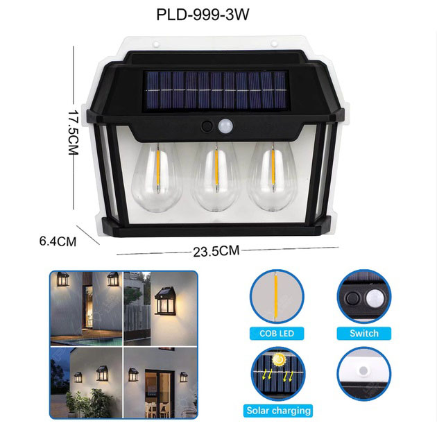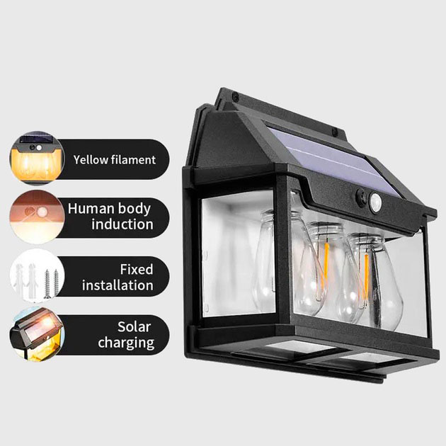 Ліхтар вольфрамова лампа на сонячній батареї 999-38W, датчик руху, АКБ 18650