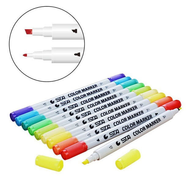 • Подвійні наконечники: Кожен маркер обладнаний двома наконечниками – лайнером та маркером-пензлем. Лайнер з товщиною пера 0,4 мм ідеально підходить для тонких ліній та деталей, у той час як маркер-пензель дозволяє створювати ширші лінії та каліграфічні написи.