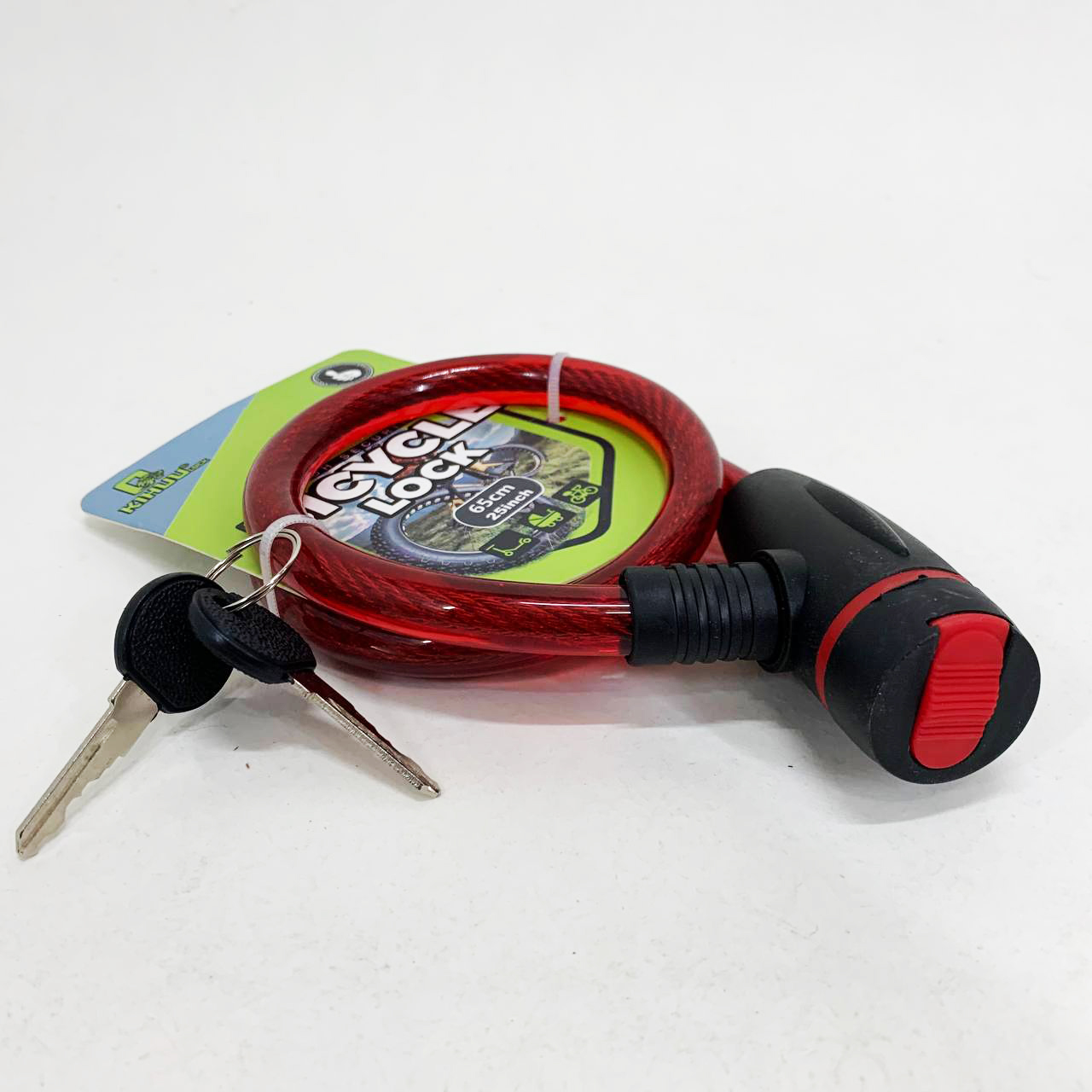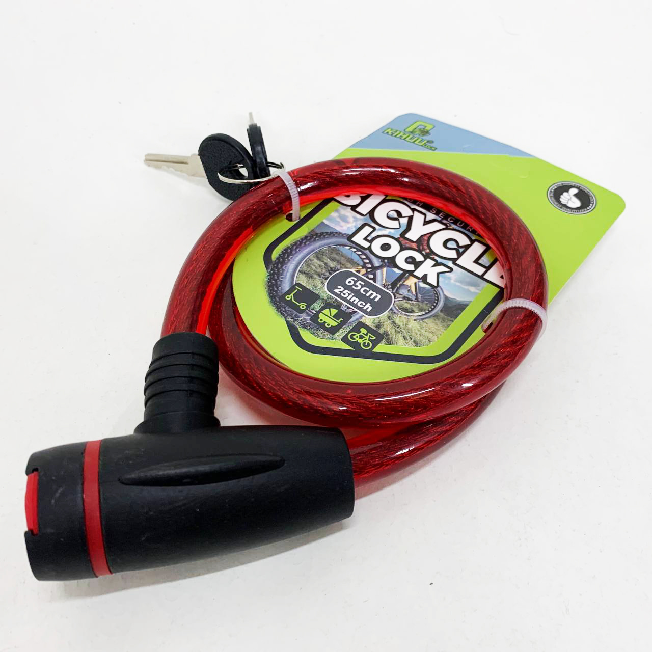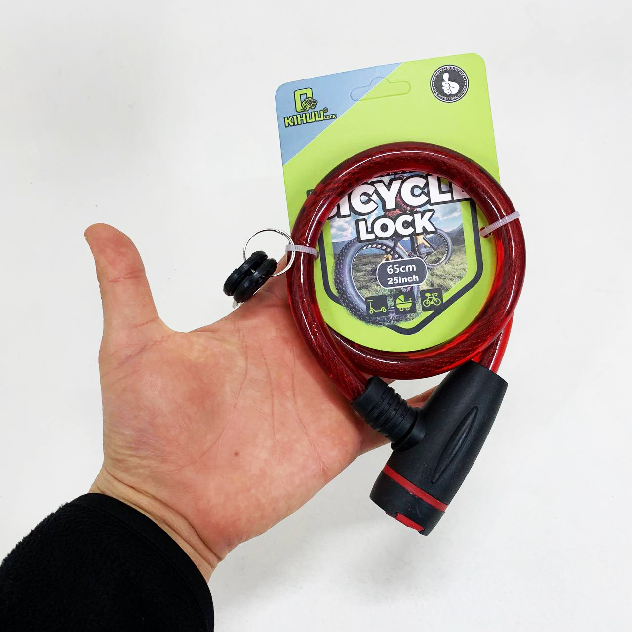 Замок велосипедний KIHUU LOCK 187, 15*65 тросовий, 2 ключі. Колір: червоний