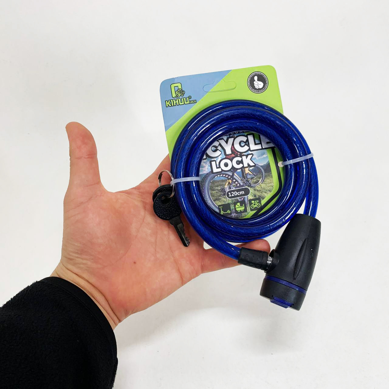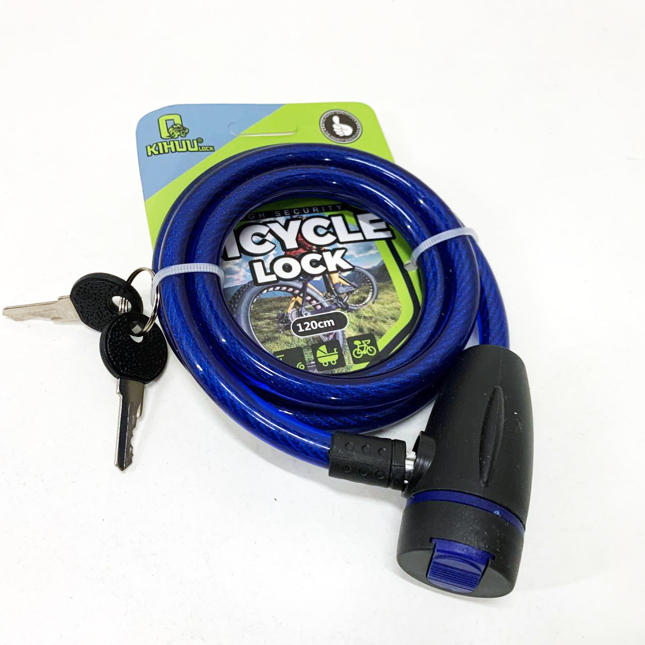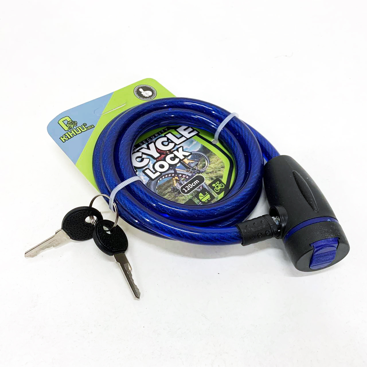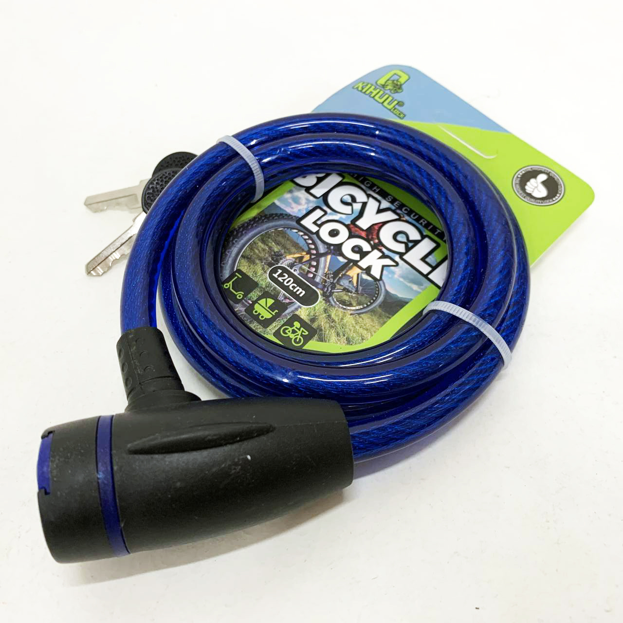 Замок велосипедний KIHUU LOCK 187, 10*120 тросовий, 2 ключі. Колір: синій