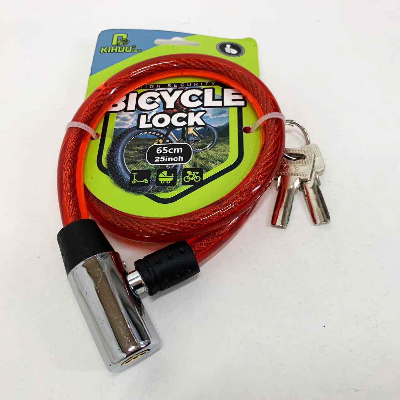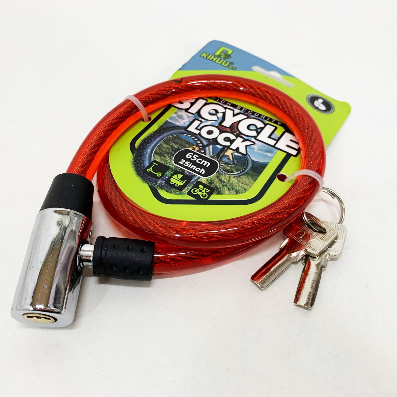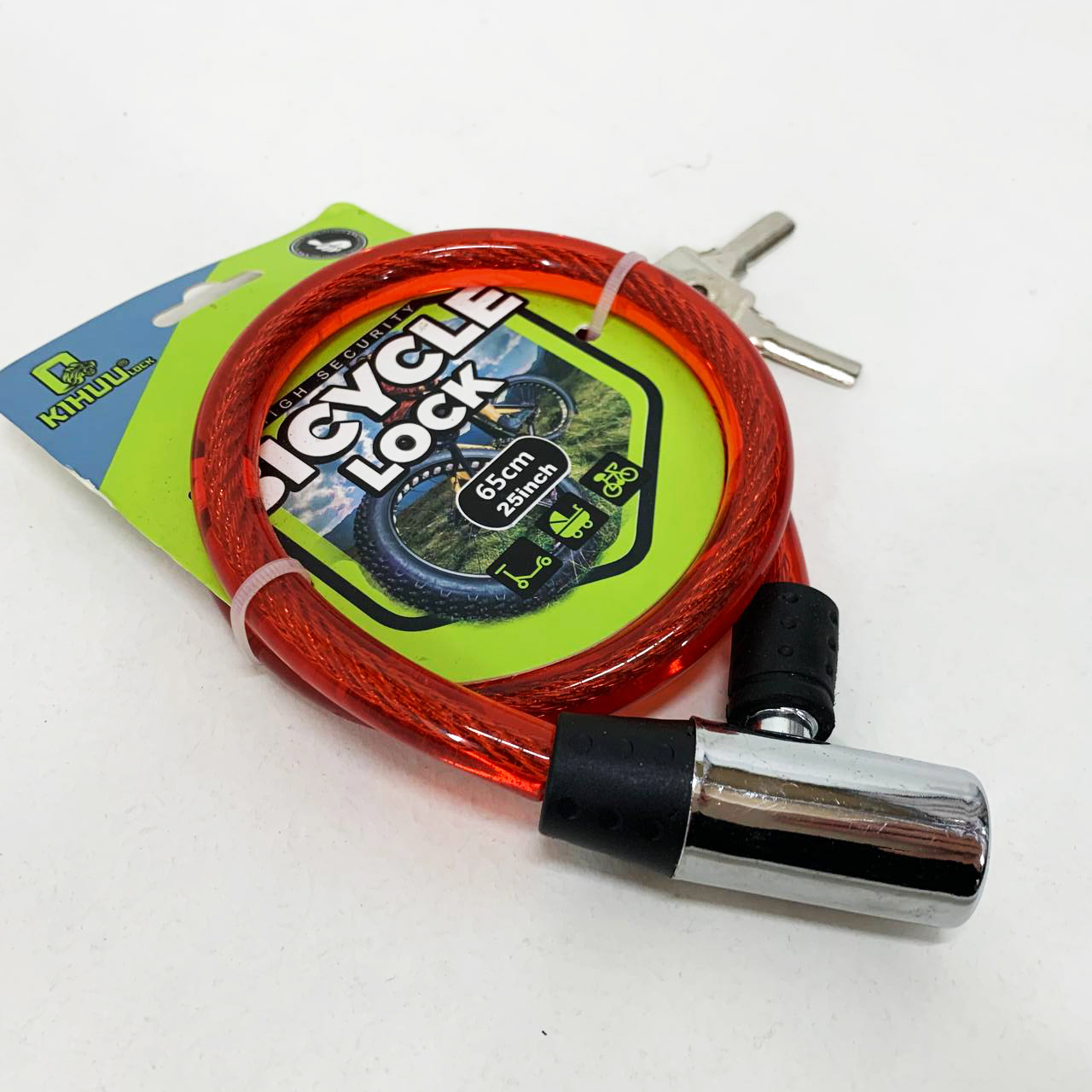 Замок велосипедний 185, 12*65 тросовий, 2 ключі. Колір: червоний