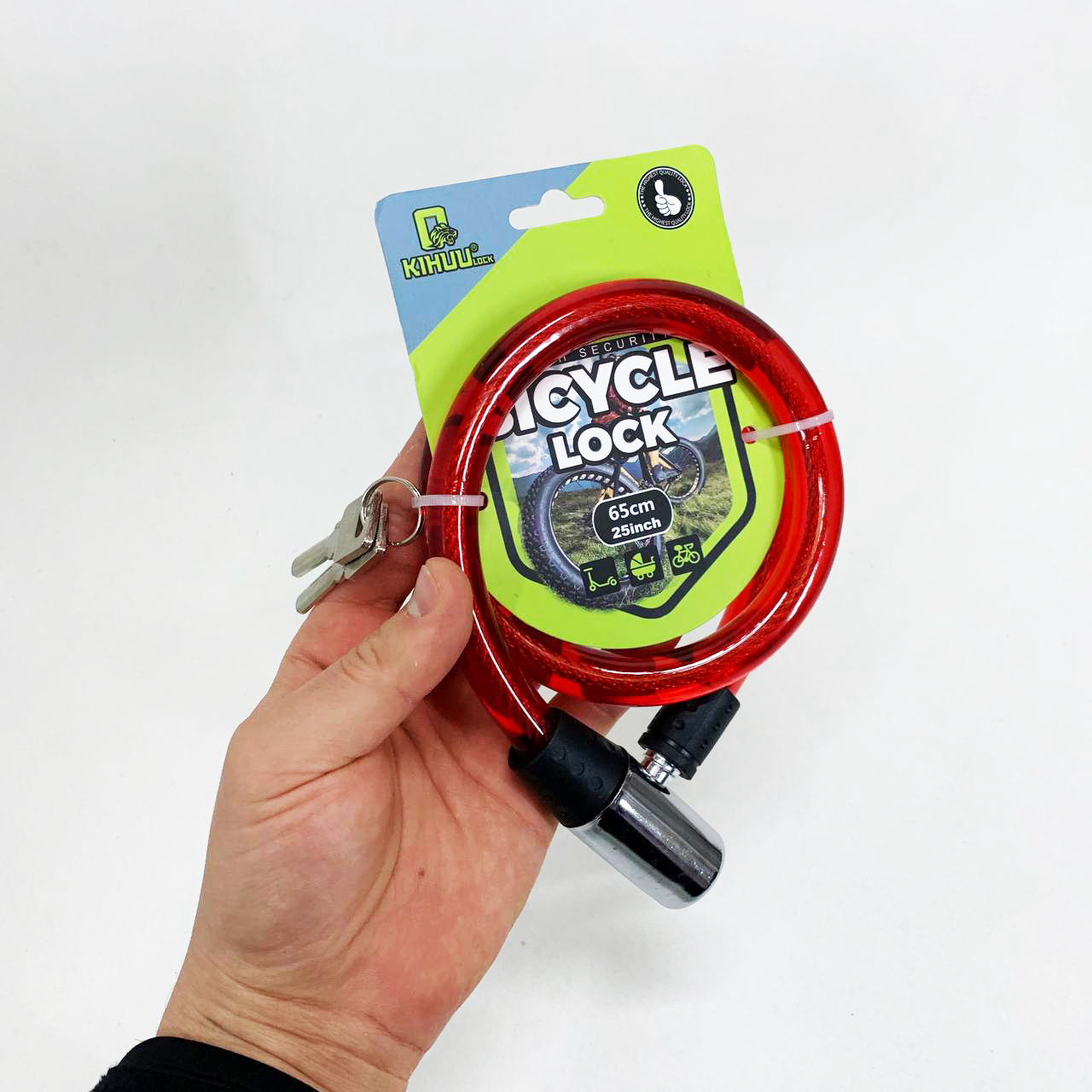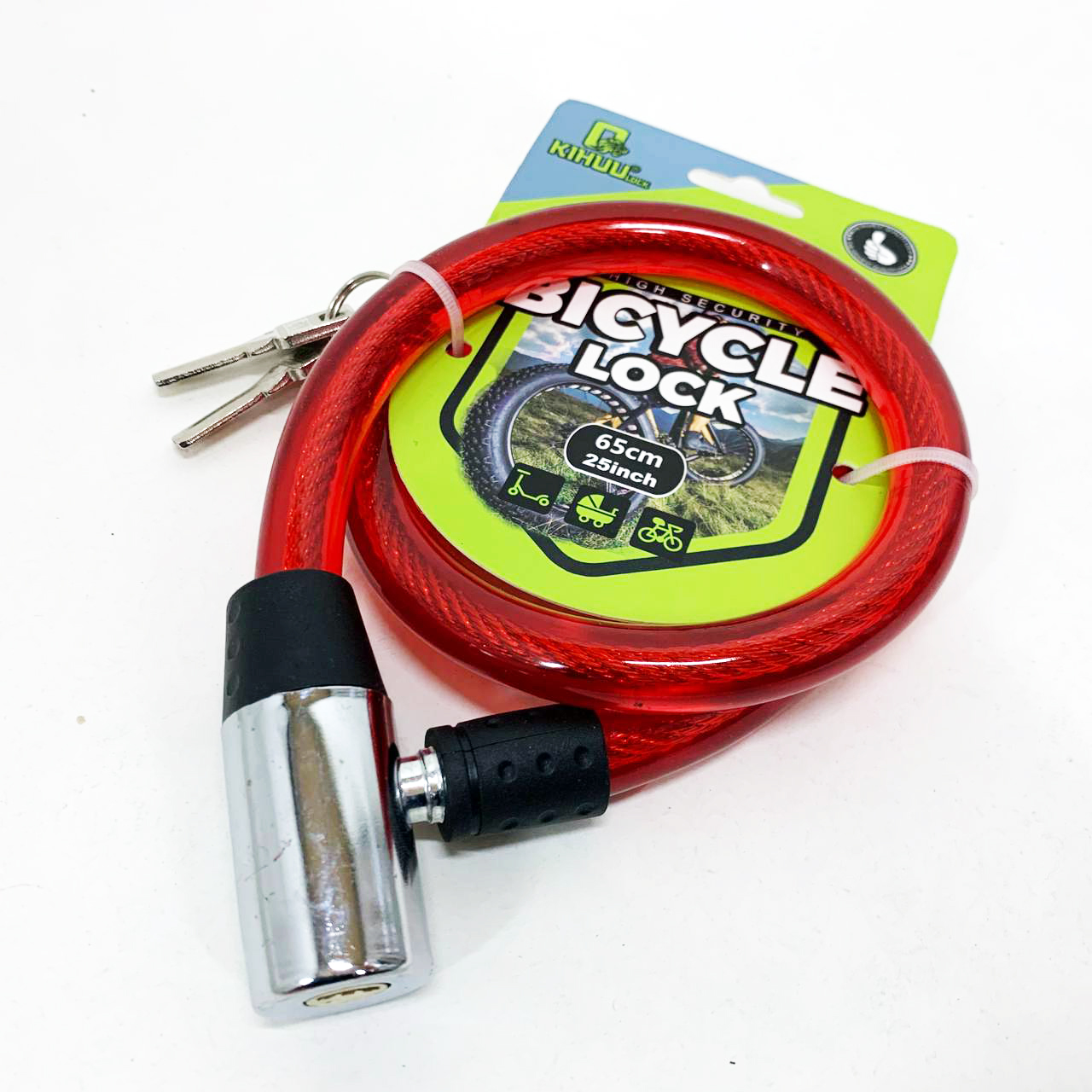 Замок велосипедний KIHUU LOCK 185, 15*65 тросовий, 2 ключі. Колір: червоний