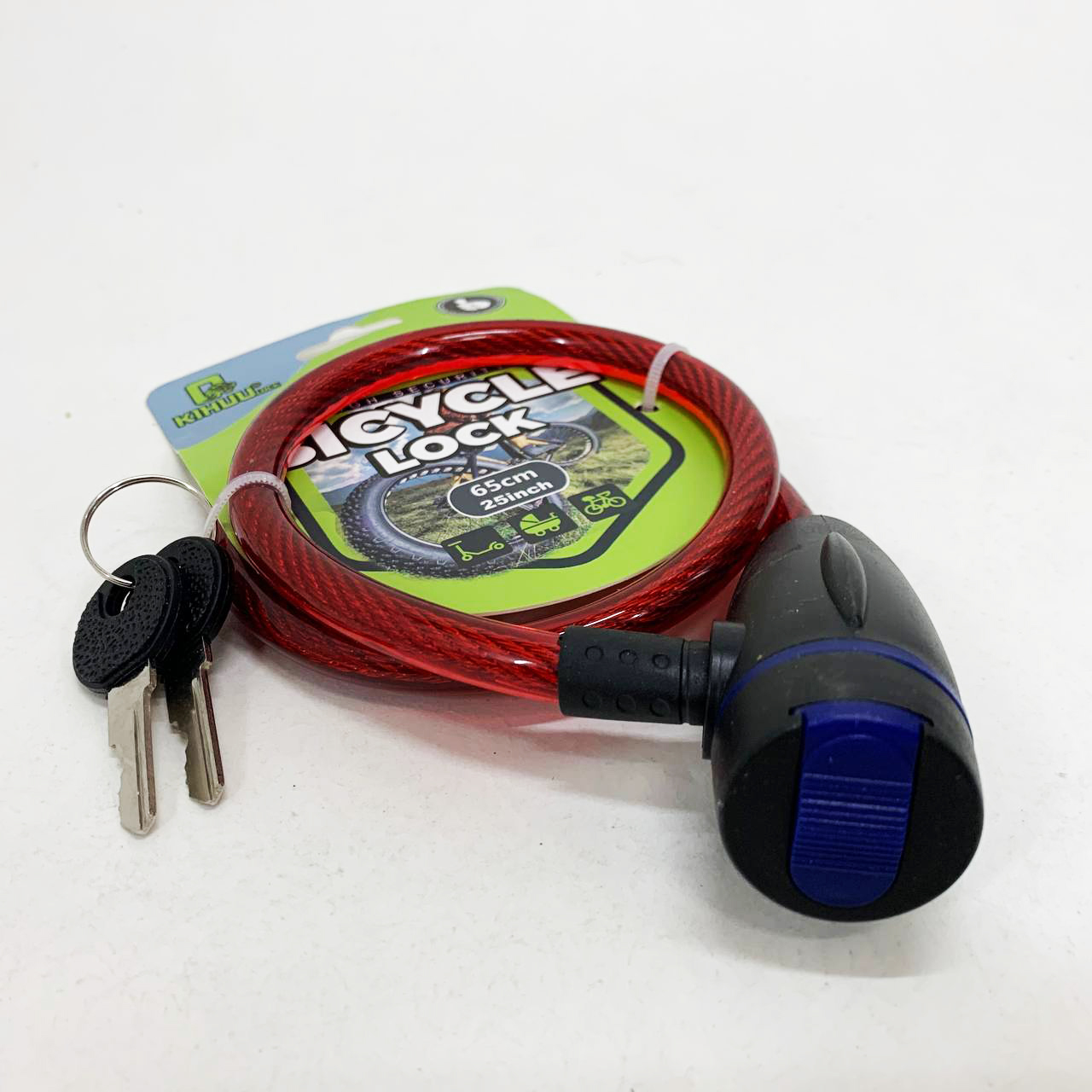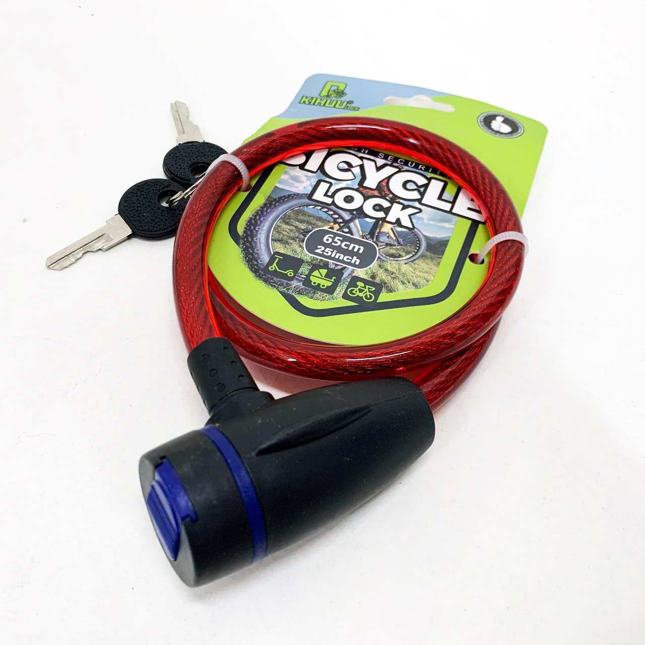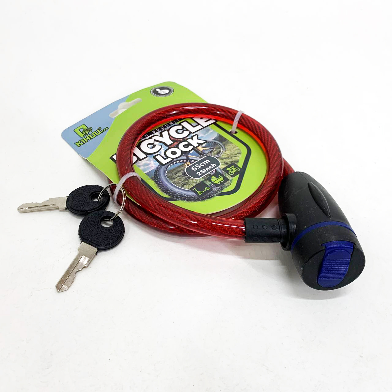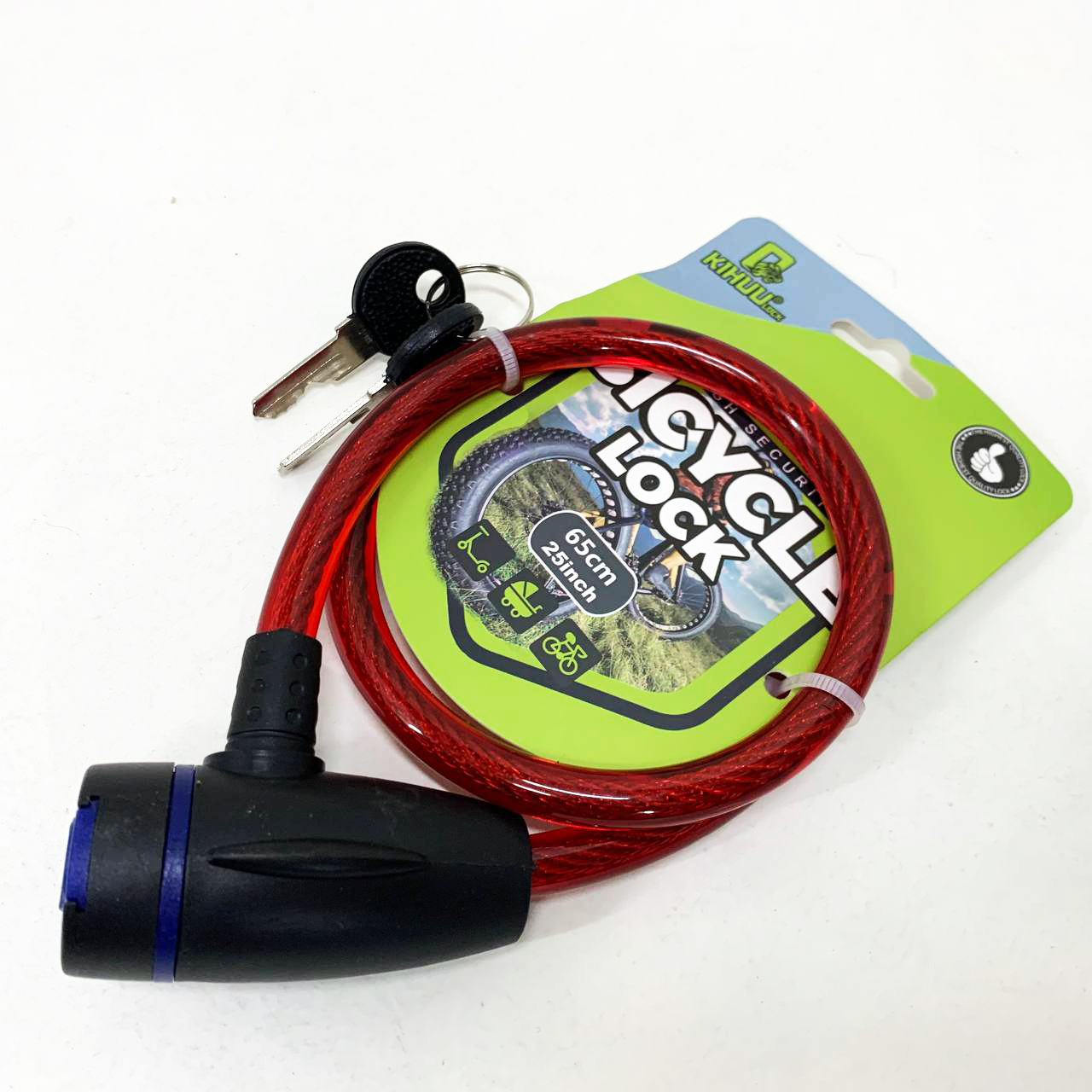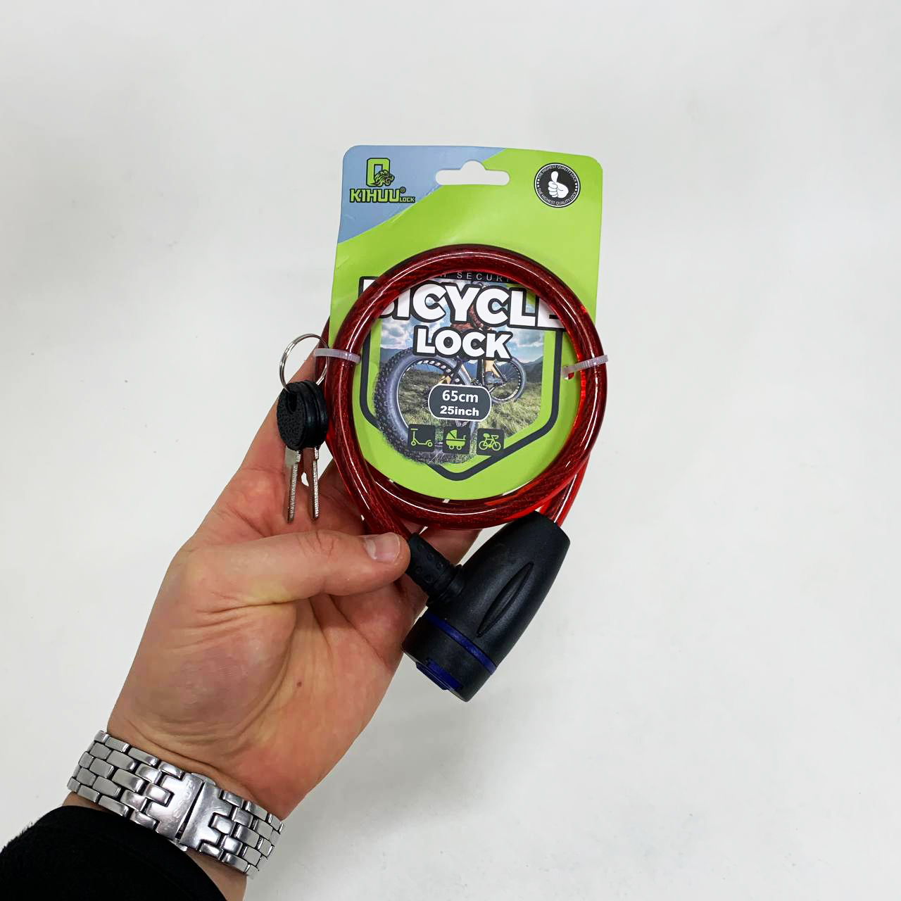 Замок велосипедний KIHUU LOCK 187, 10*65 тросовий, 2 ключі. Колір: червоний